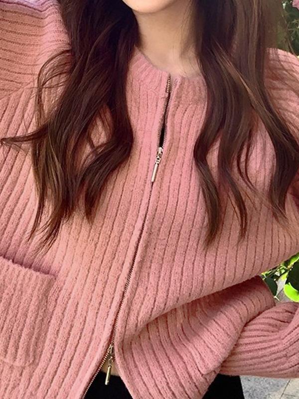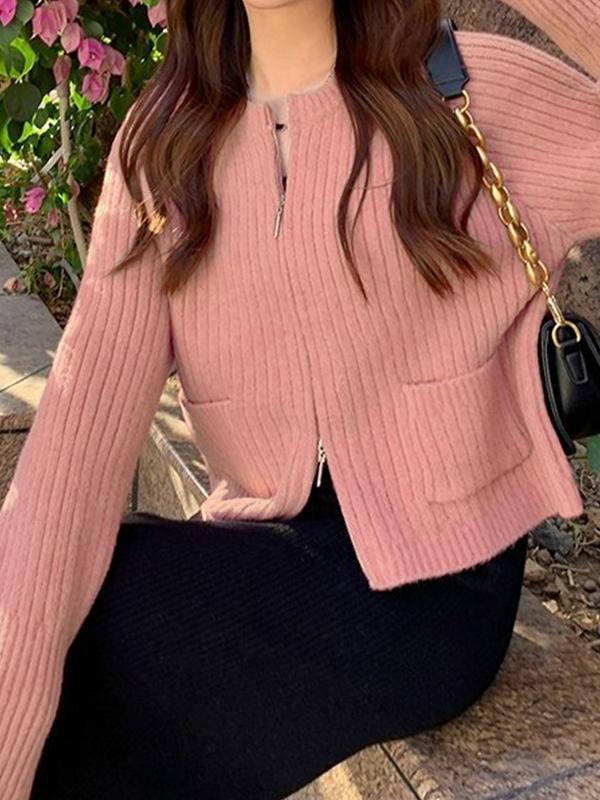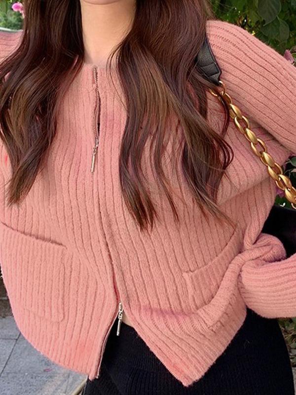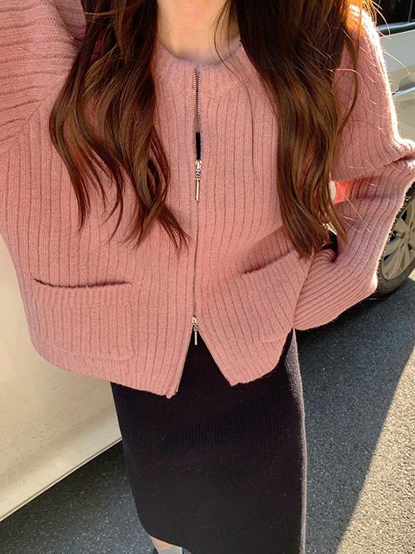 Solid Double Zip Short Knit Cardigan