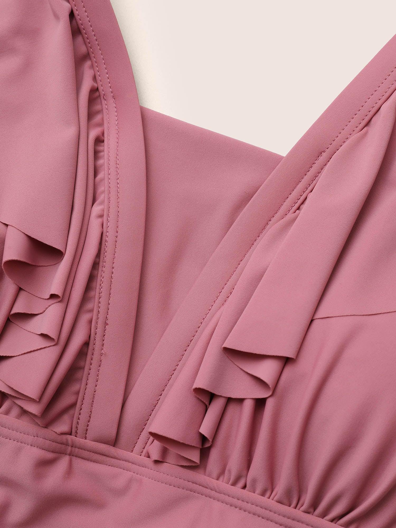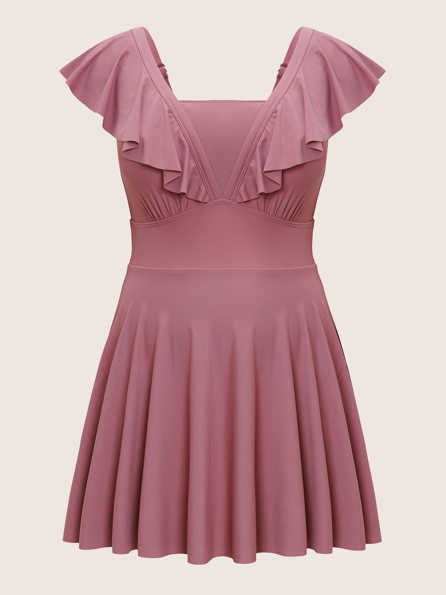 Shop Solid Flutter Trim A Line Swim Dress now and redefine your style with confidence at BloomChic. Tailored for mid and plus-size women. This trendy Swimwear Women, sizes 10-30. Season:Spring;Color:DustyPink;Bra Type:Wireless;Coverage:Full;Waist Design:High Rise;Neckline:Square Neck;Sleeve Type:Ruffle Sleeve;Pattern Type:Plain;Pocket:No-pocket;Belt:No-belt;Chest pad:Removable Padding;Lining:Lining