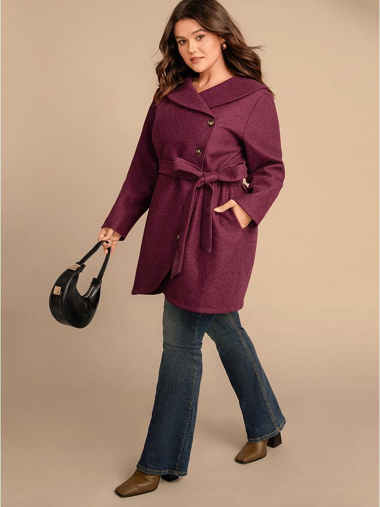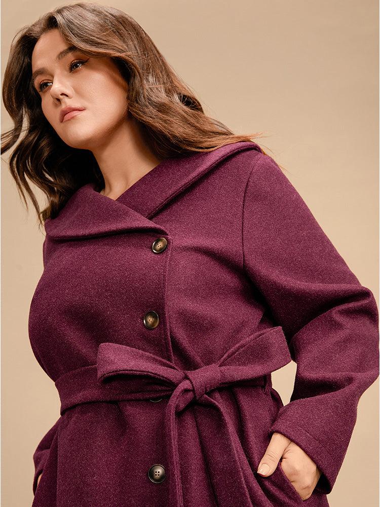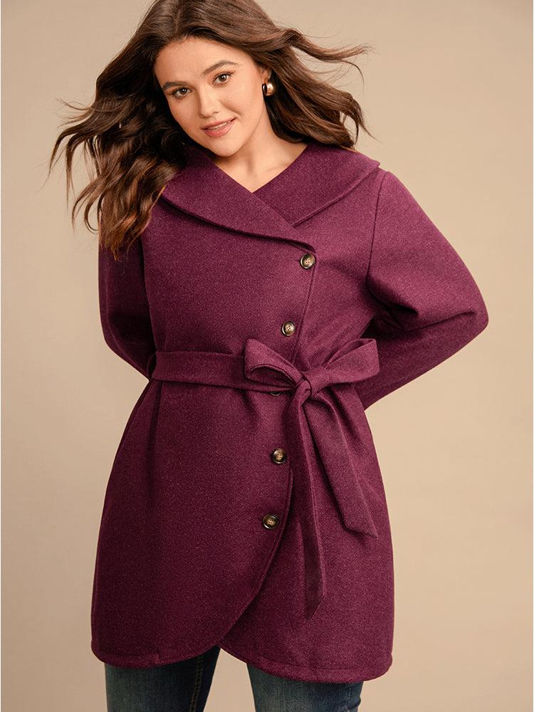 Shop Solid Foldover Collar Pocket Asymmetrical Hem Belted Coat now and redefine your style with confidence at BloomChic. Tailored for mid and plus-size women. This trendy Outerwear Women, sizes 10-30. Color:Burgundy;Details:Pocket, Button, Cross straps;Pocket:It is perfectly sized to carry a phone.;Belt:Belt;Lining:Lining;Most Wearable in:41°F(5°C)-32°F(0°C)