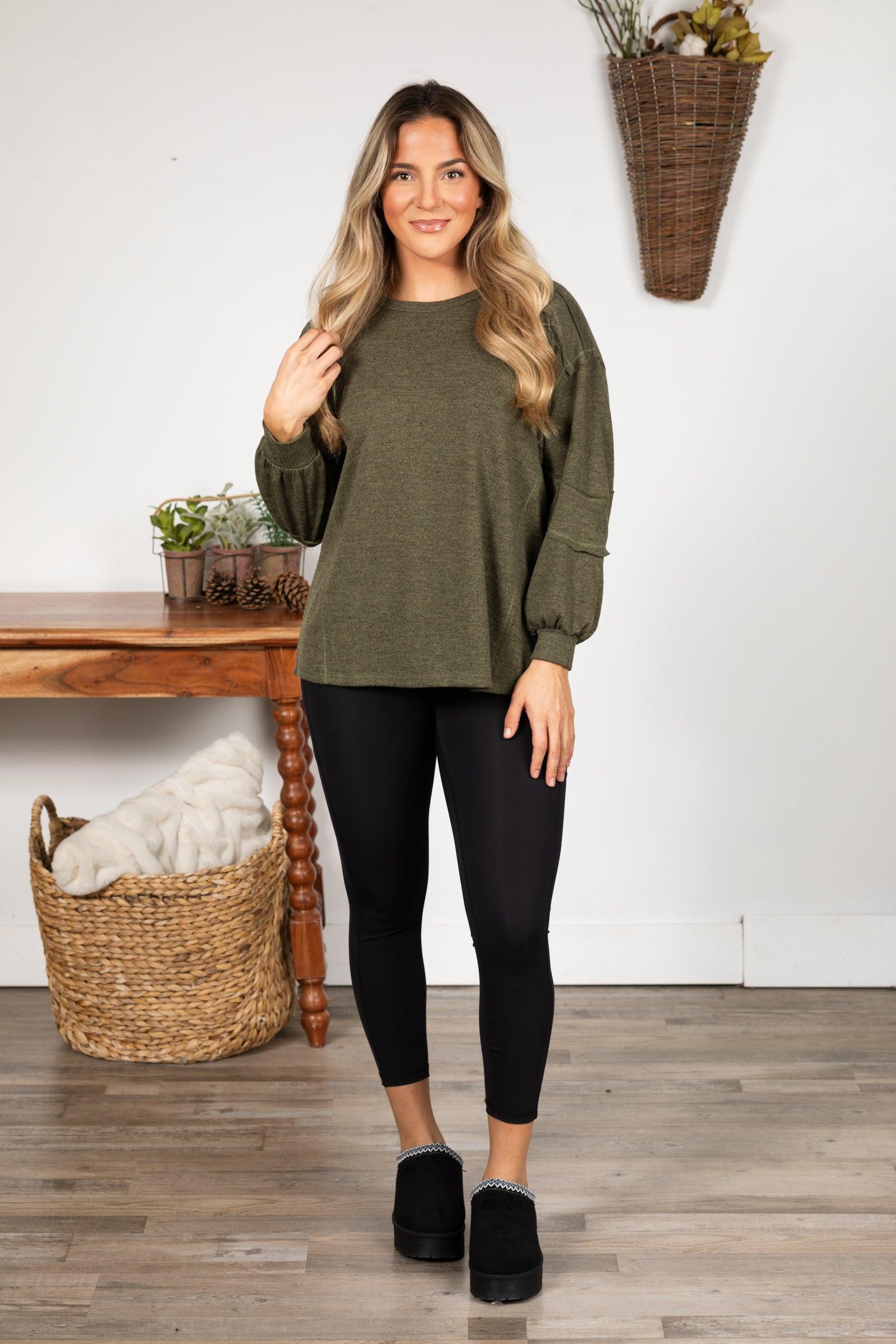 Product Details Colors: Heather Grey/ Heather Mocha/ Heather Olive/ Heather Wine Print: Heathered Neckline: Round Sleeve: Long Sleeve Hemline: Straight Brand: Andree By Unit Material and Care 96% Polyester 4% Spandex Hand Wash Cold Hang/Line Dry Size and Fit Small: Bust 42" Waist 42" Length 25" Medium: Bust 44" Waist 44" Length 25.5" Large: Bust 46" Waist 46" Length 26" X Large: Bust 48" Waist 48" Length 26.5" 1X Large: Bust 50" Waist 50" Length 27" 2X Large: Bust 52" Waist 52" Length 27.5" 3X Large: Bust 54" Waist 54" Length 28" Video model is 5’7 and wearing size small Photo Model is 5'7 and wearing a size small