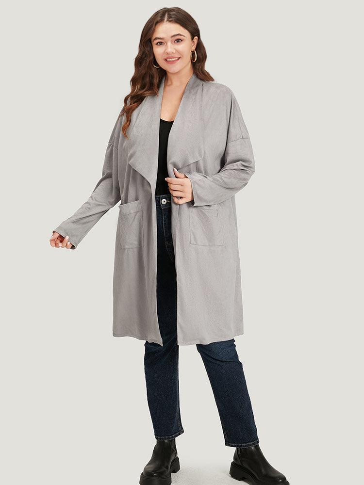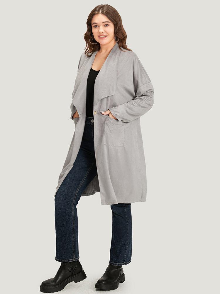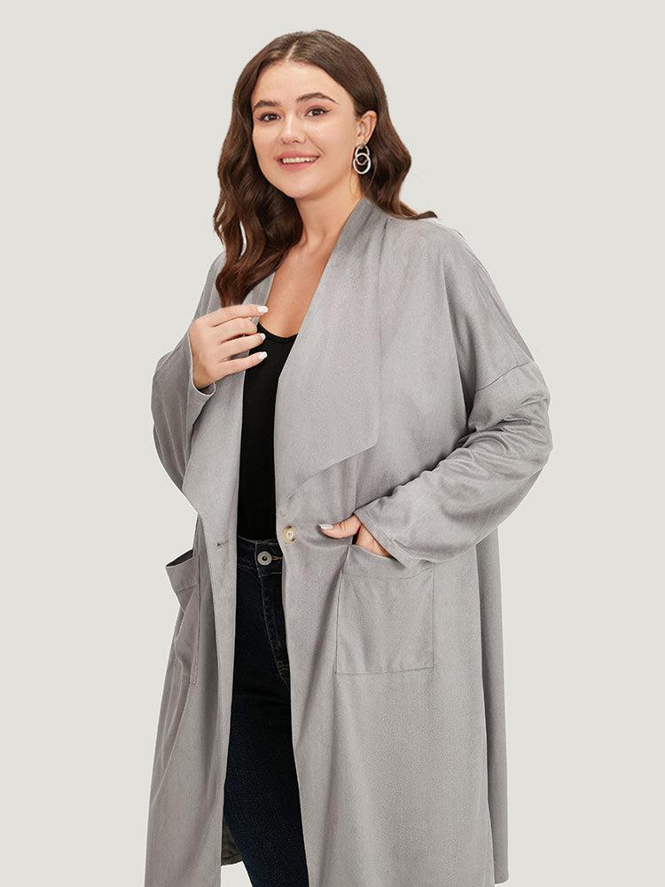 Shop Solid Lapel Collar Patched Pocket Faux Suede Coat now and redefine your style with confidence at BloomChic. Tailored for mid and plus-size women. This trendy Outerwear Women, sizes 10-30. Season:Fall;Color:DarkGray;Style:Casual;Pattern Type:Plain;Details:Pocket, Button, Plain;Pocket:It is perfectly sized to carry a phone.;Belt:No-belt;Closure Type:Button;Lining:No-lining