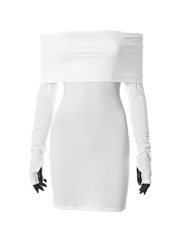 Solid Off Shoulder Ruched Thumb Hole Mini Dress