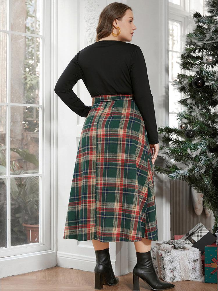Shop Solid Patchwork Surplice Neck Belted Plaid Dress now and redefine your style with confidence at BloomChic. Tailored for mid and plus-size women. This trendy Dress, sizes 10-30. You can never go wrong with BloomChic Dresses. Color:DarkGreen,DarkBlue;Neckline:V-neck;Sleeve Type:Regular Sleeve;Details:Patchwork;Pocket:No-pocket;Belt:Belt