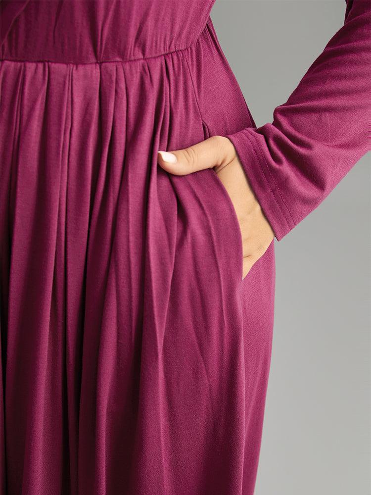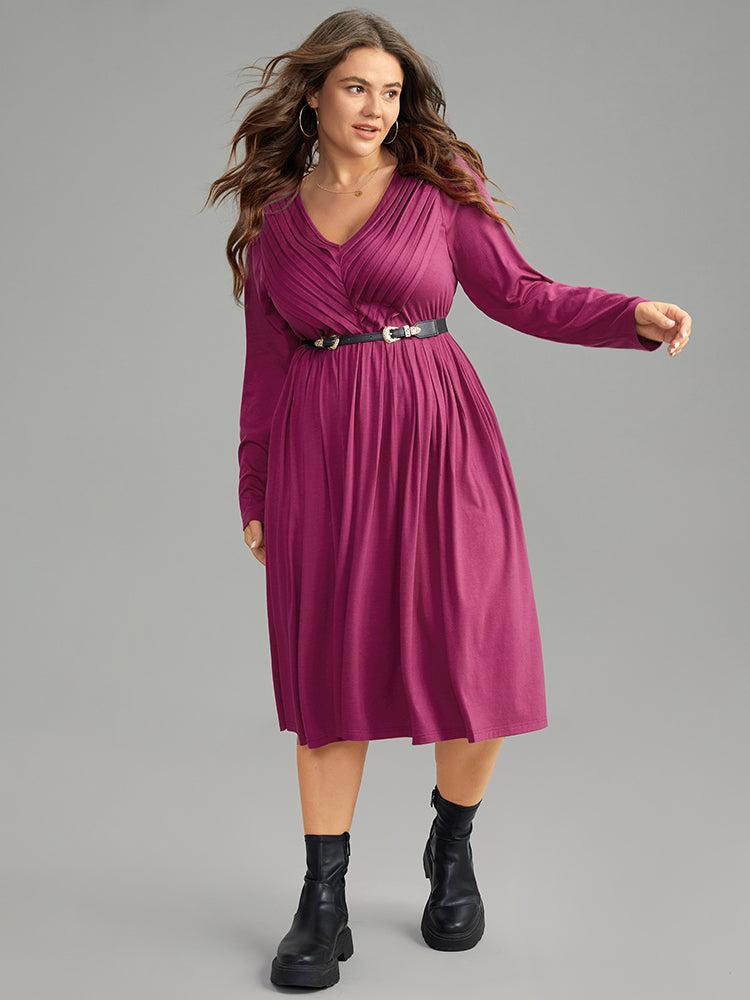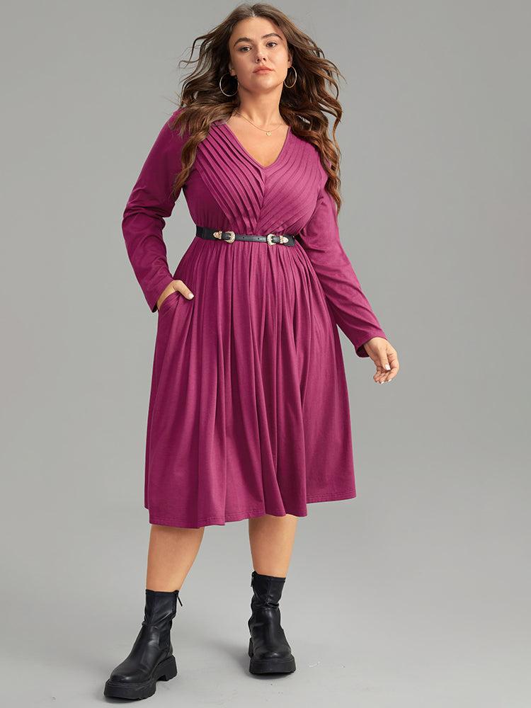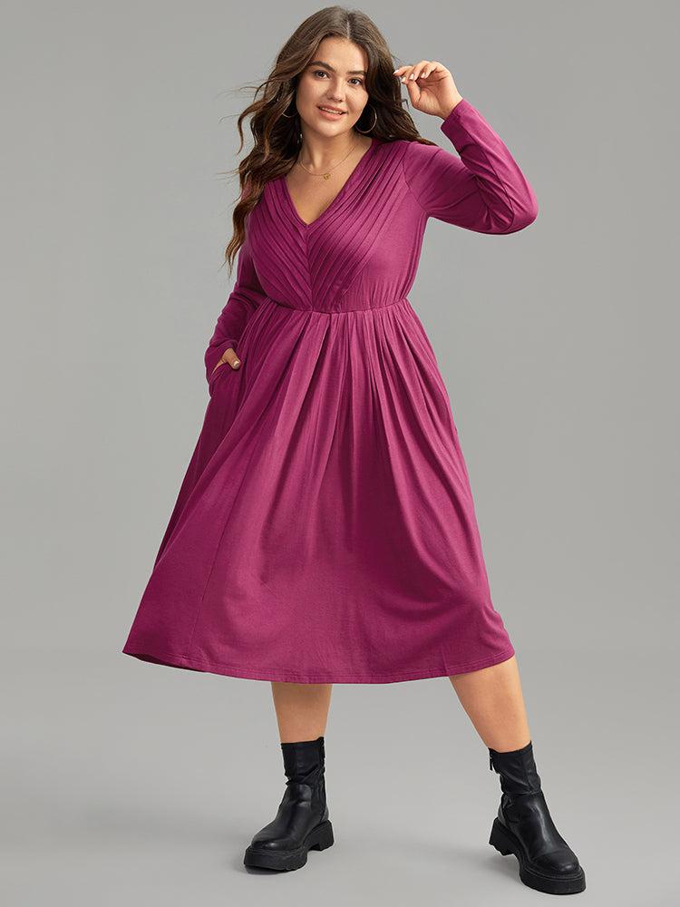 Shop Solid Pleated V Neck Elastic Waist Dress now and redefine your style with confidence at BloomChic. Tailored for mid and plus-size women. This trendy Dress, sizes 10-30. You can never go wrong with BloomChic Dresses. Season:Winter;Color:Purple;Style:Casual;Neckline:V-neck;Sleeve Type:Regular Sleeve;Pattern Type:Plain;Details:Pocket, Elastic Waist, Pleated, Plain;Pocket:It is perfectly sized to carry a phone.;Belt:No-belt