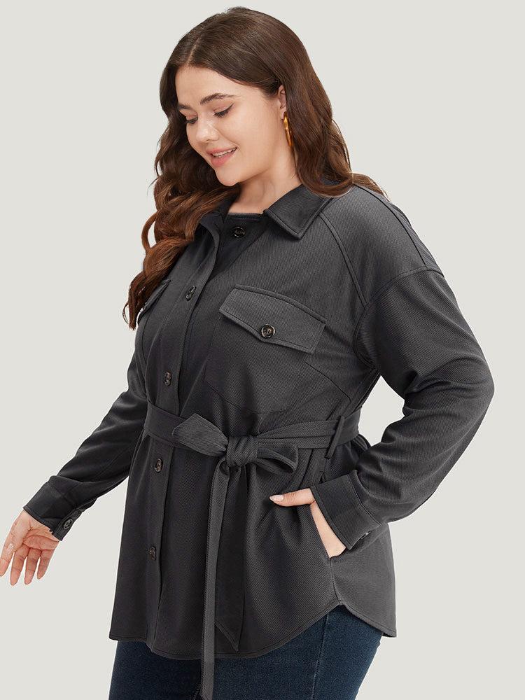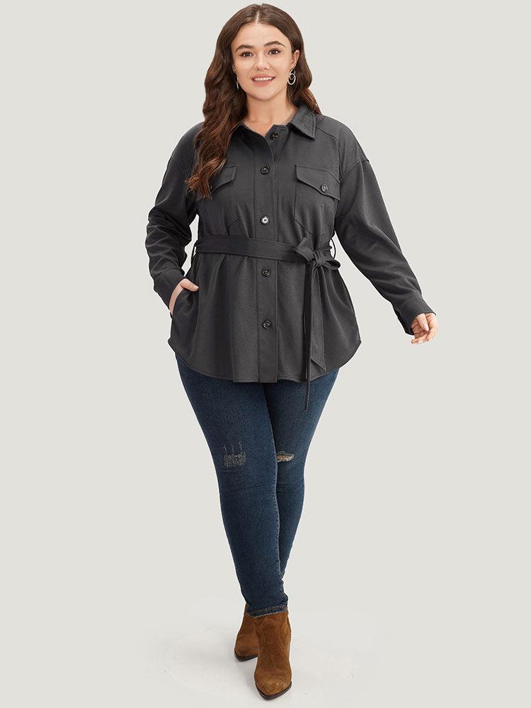 Shop Solid Pocket Button Through Belted Coat now and redefine your style with confidence at BloomChic. Tailored for mid and plus-size women. This trendy Outerwear Women, sizes 10-30. Season:Winter;Color:Gray;Style:Casual;Pattern Type:Plain;Details:Pocket, Button, Belted, Plain;Pocket:It is perfectly sized to carry a phone.;Belt:Belt;Closure Type:Button;Lining:No-lining