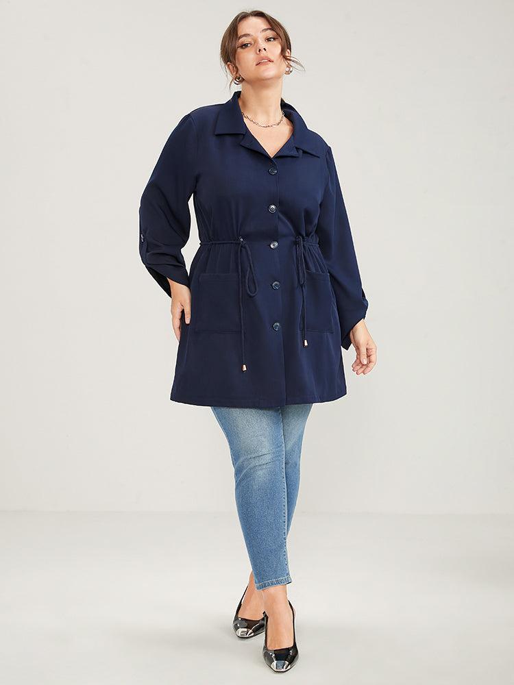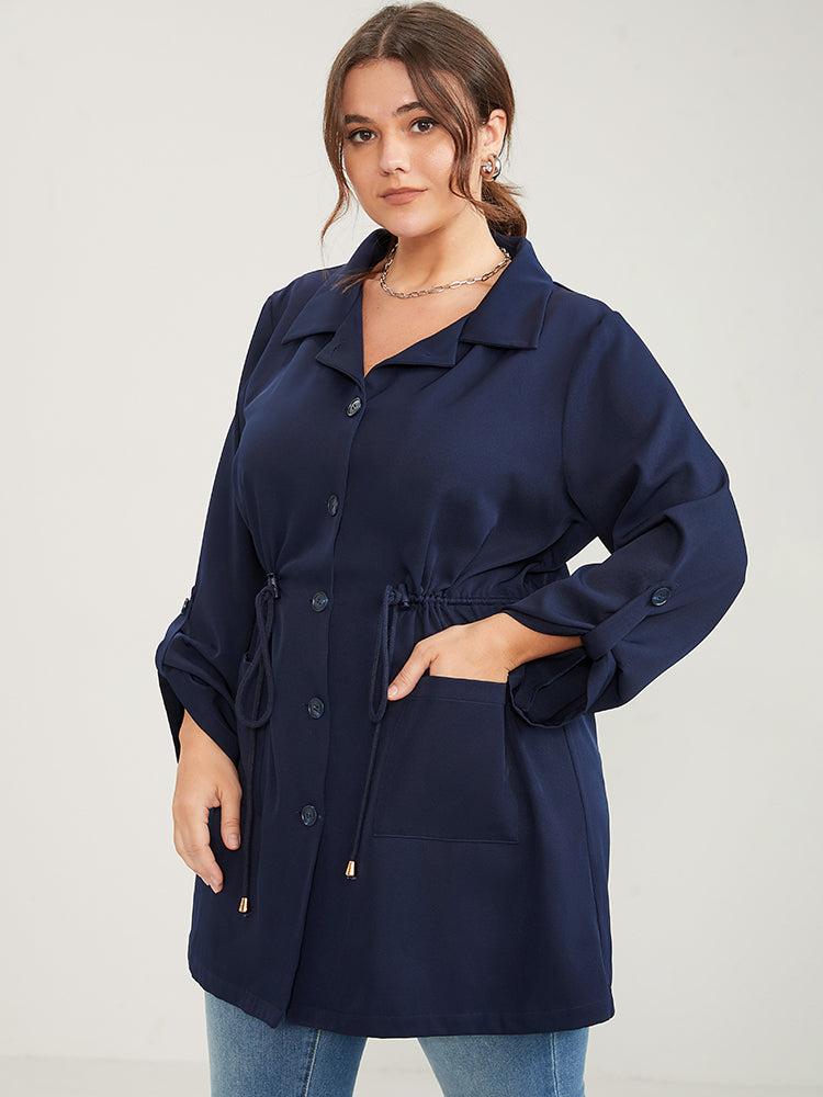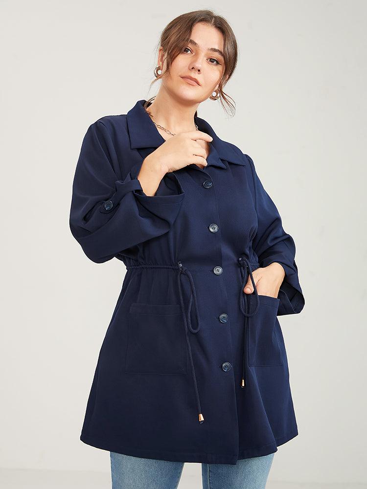 Shop Solid Pocket Button Up Cuffed Sleeve Drawstring Coat now and redefine your style with confidence at BloomChic. Tailored for mid and plus-size women. This trendy Outerwear Women, sizes 10-30. Season:Winter;Color:Navy;Details:Pocket;Pocket:It is perfectly sized to carry a phone.;Belt:No-belt;Lining:No-lining