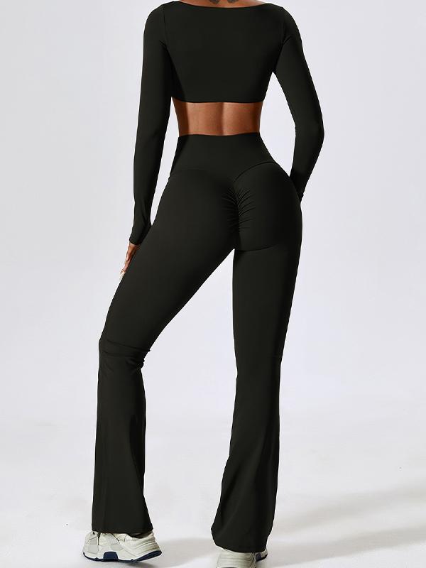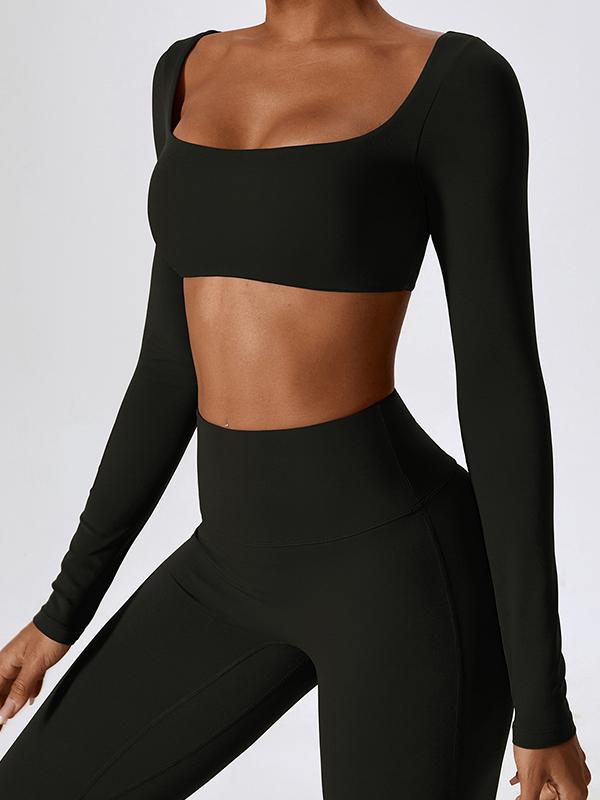 Solid Quick Dry Square Neck Cropped Active Top & Pants Set