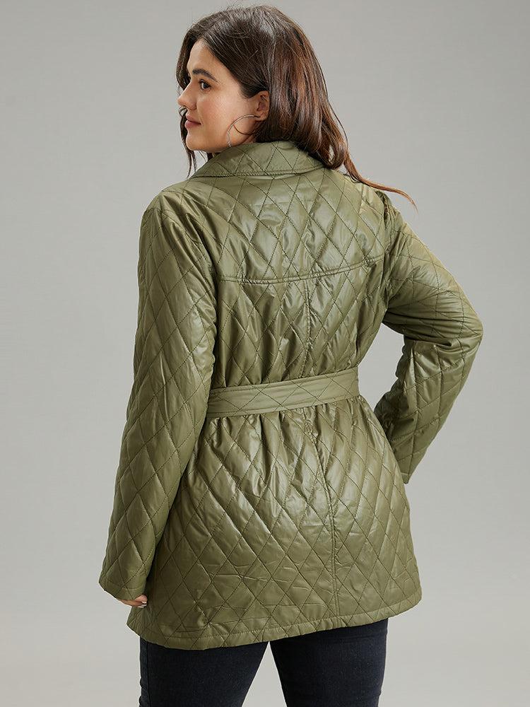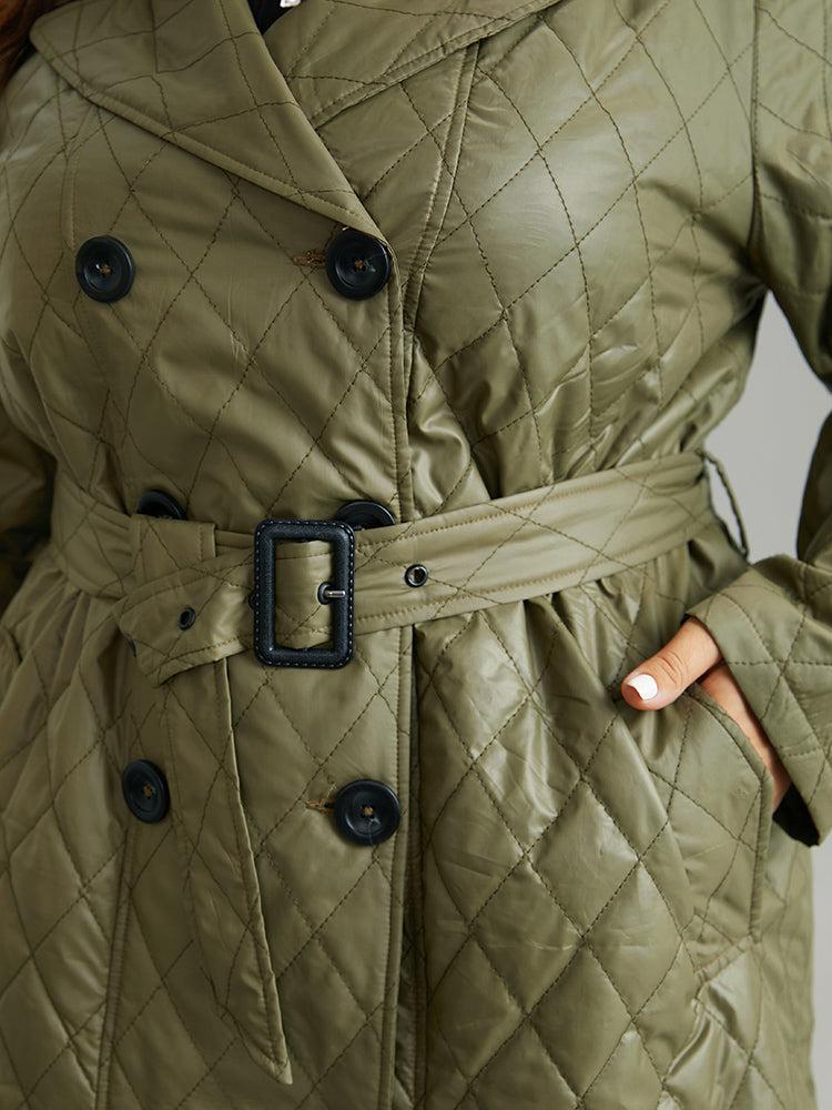 Shop Solid Quilted Double Breasted Belted Coat now and redefine your style with confidence at BloomChic. Tailored for mid and plus-size women. This trendy Outerwear Women, sizes 10-30. Season:Winter;Color:ArmyGreen;Style:Casual;Pattern Type:Plain;Details:Pocket, Button, Belted;Pocket:It is perfectly sized to carry a phone.;Belt:Belt;Closure Type:Button;Lining:No-lining