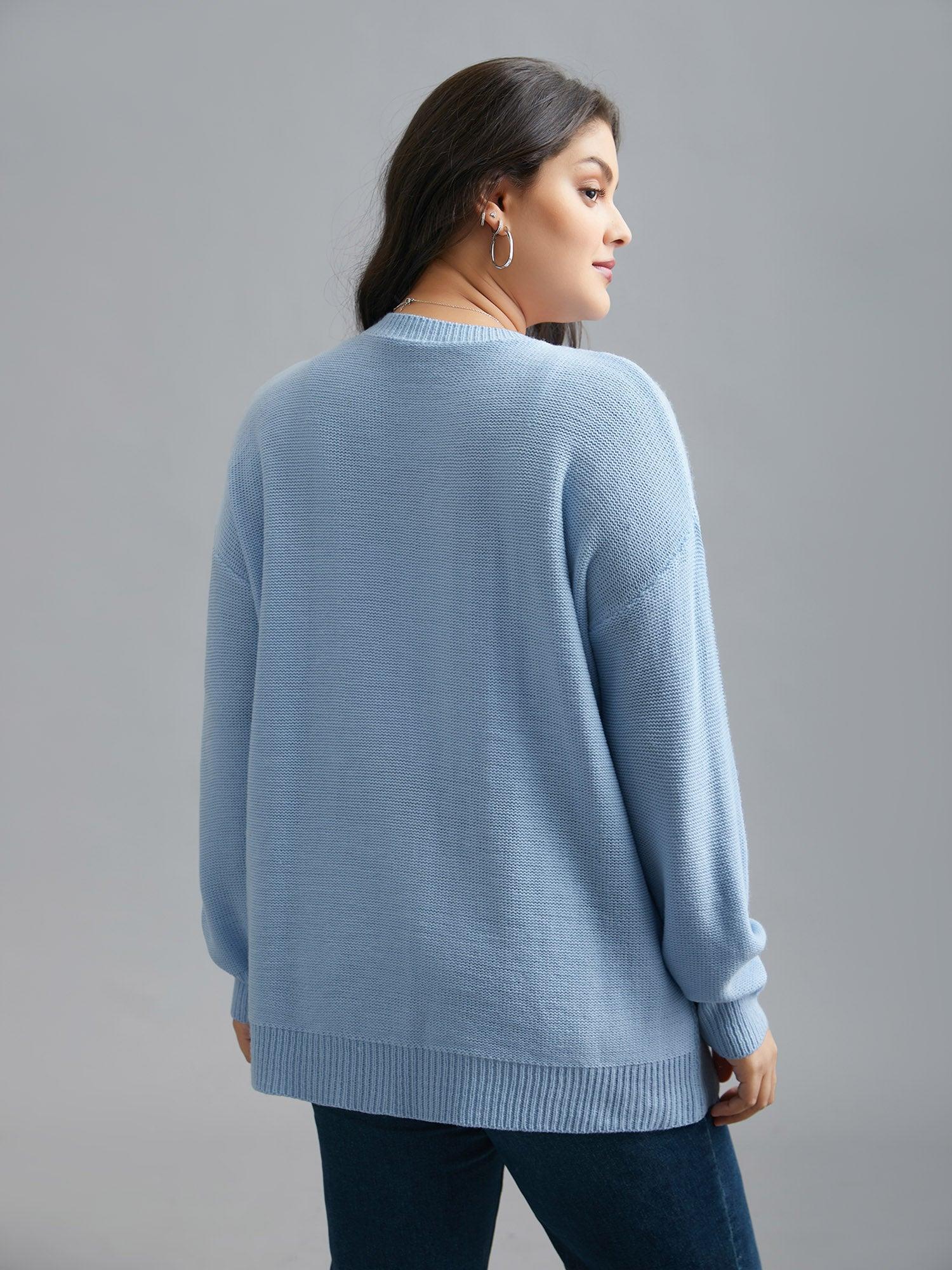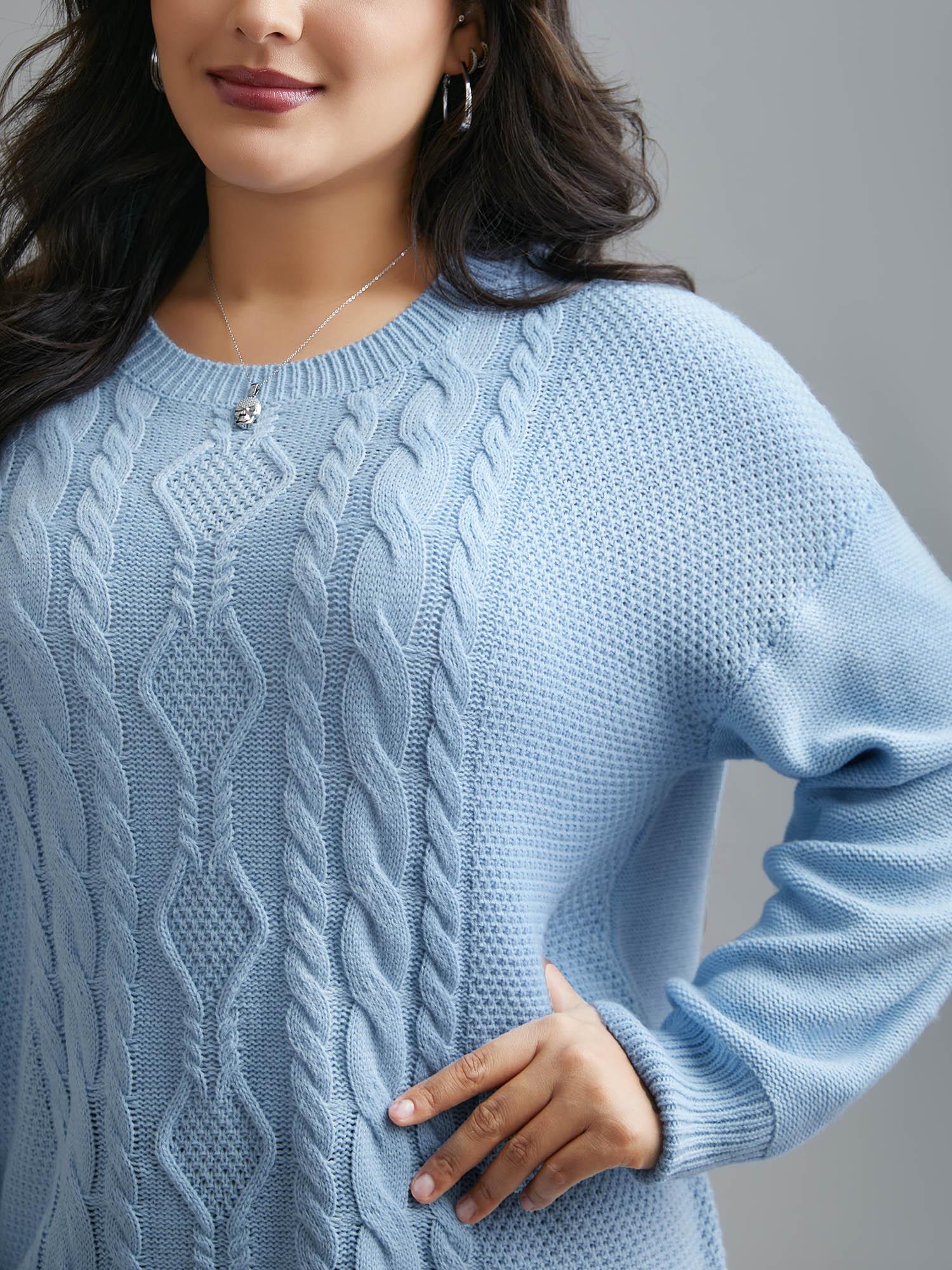 Shop Solid Round Neck Plisse Cable Knit Pullover now and redefine your style with confidence at BloomChic. Tailored for mid and plus-size women. This trendy Sweaters Cardigans Women, sizes 10-30. Season:Winter;Color:LightBlue;Style:Casual;Neckline:Round Neck;Sleeve Type:Drop shoulder sleeve;Prints:Non;Details:Texture, Cable Knit;Pocket:No-pocket;Belt:No-belt;Closure Type:Non