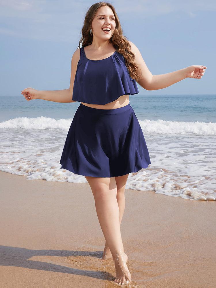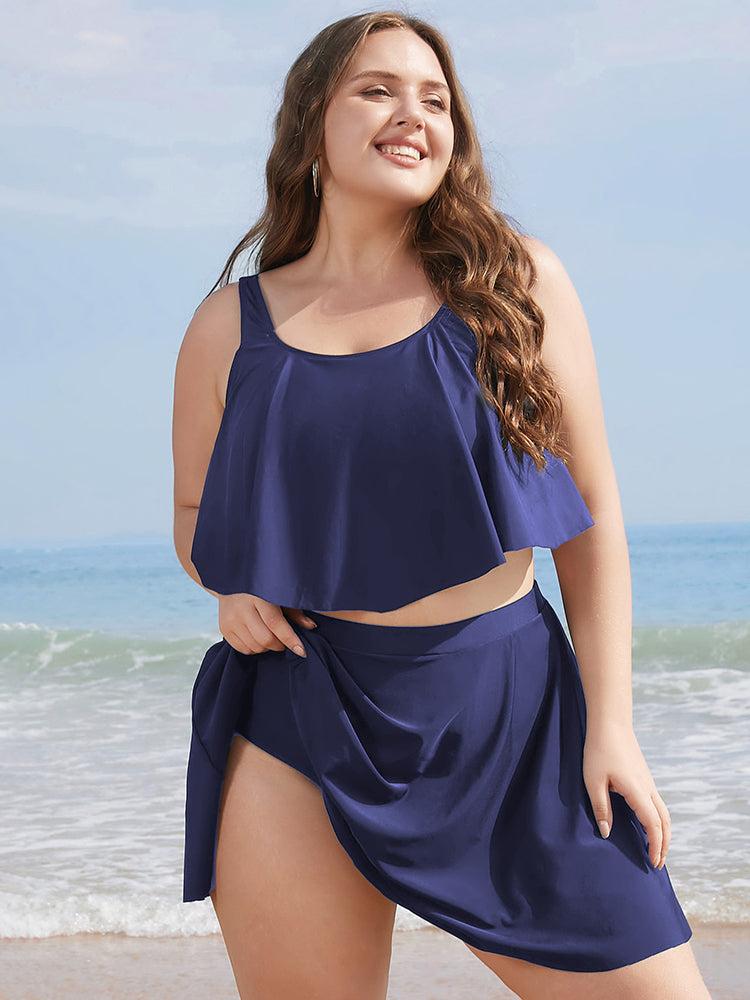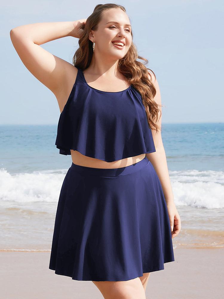 Shop Solid Ruffles High Waist Swim Skirt now and redefine your style with confidence at BloomChic. Tailored for mid and plus-size women. This trendy Swimwear Women, sizes 10-30. Season:Summer;Color:Indigo;Waist Design:High Rise;Pattern Type:Plain;Details:Elastic Waist, Plain, A-line;Pocket:No-pocket;Belt:No-belt;Lining:Lining