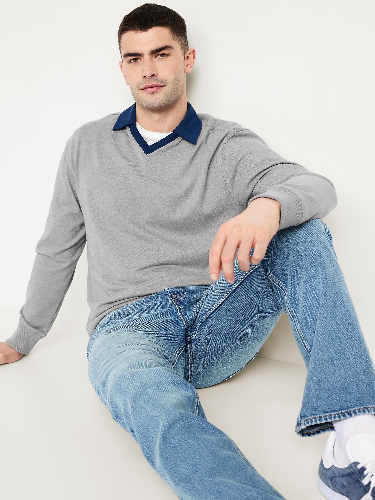 spread v-neck collar long sleeves contrasting rugby stripes at upper body vented sides pullover style #685500