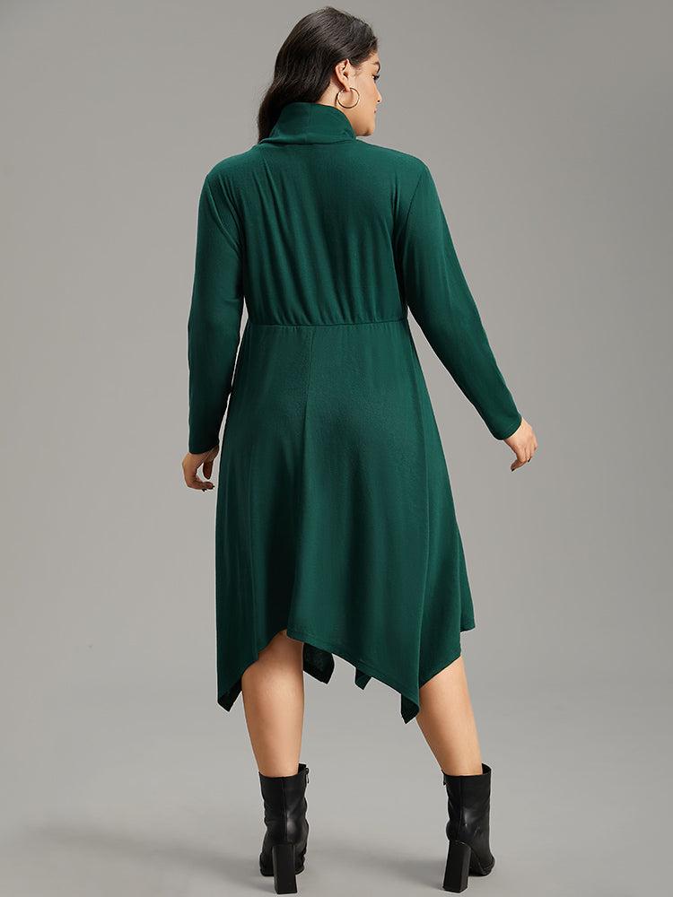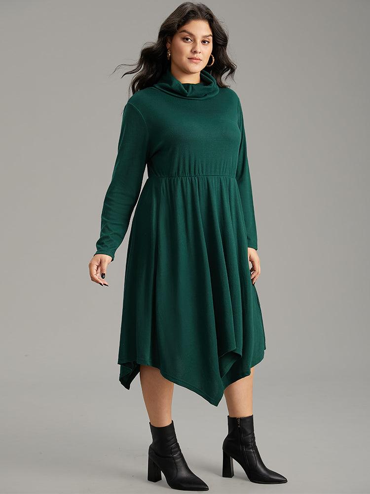 Shop Solid Turtleneck Hanky Hem Pocket Dress now and redefine your style with confidence at BloomChic. Tailored for mid and plus-size women. This trendy Dress, sizes 10-30. You can never go wrong with BloomChic Dresses. Season:Winter;Color:DarkGreen;Style:Casual;Neckline:Turtleneck;Sleeve Type:Regular Sleeve;Pattern Type:Plain;Details:Pocket, Elastic Waist, Plain, Asymmetrical;Pocket:It is perfectly sized to carry a phone.;Belt:No-belt