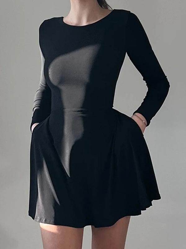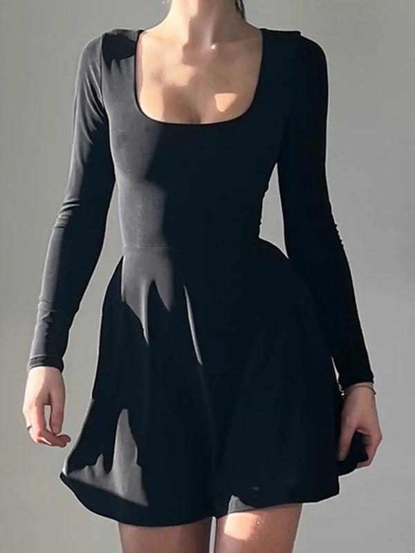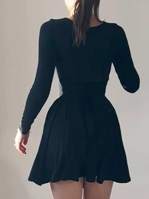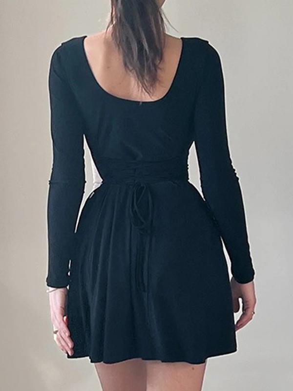 Solid U Neck Tie Back A Line Mini Dress