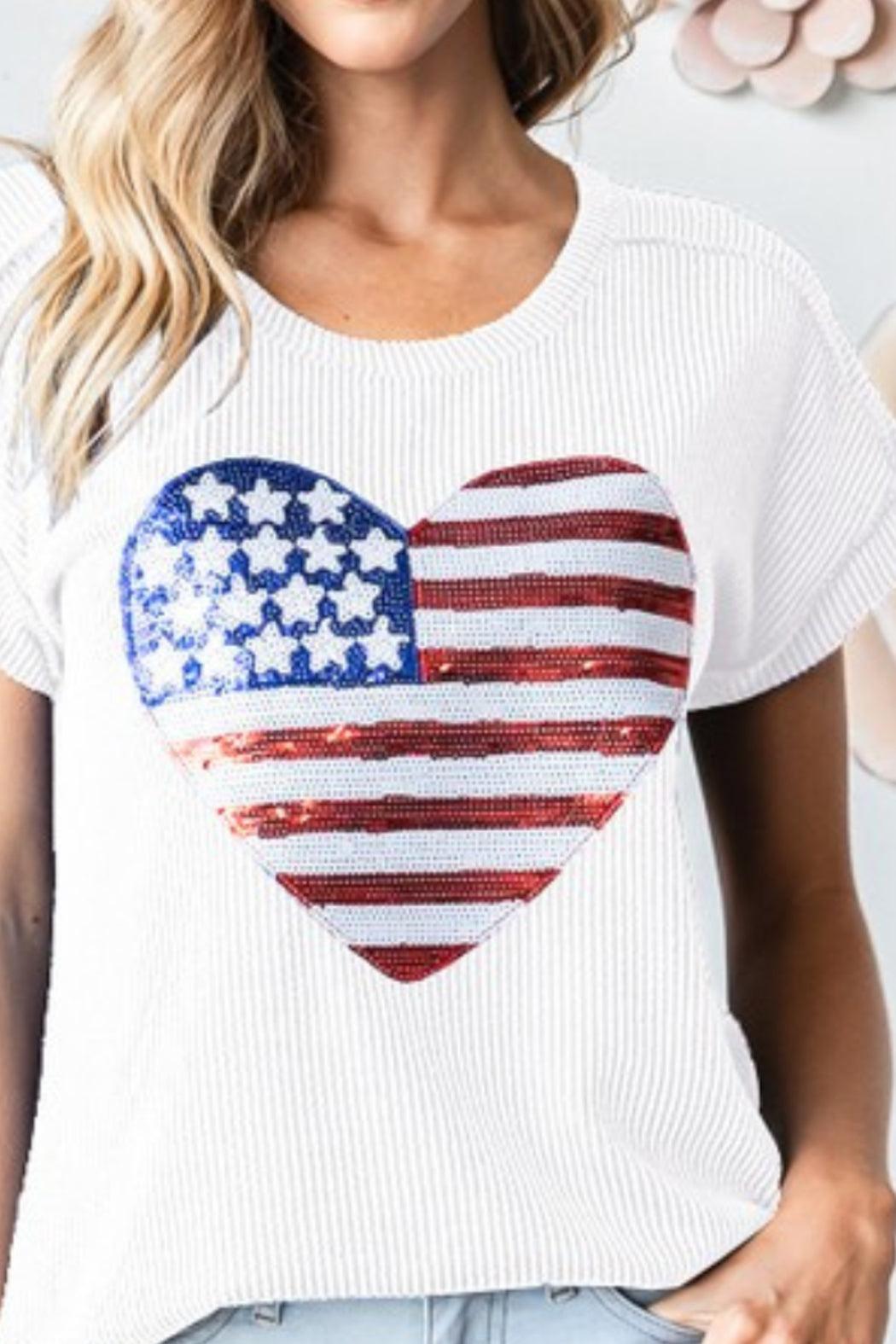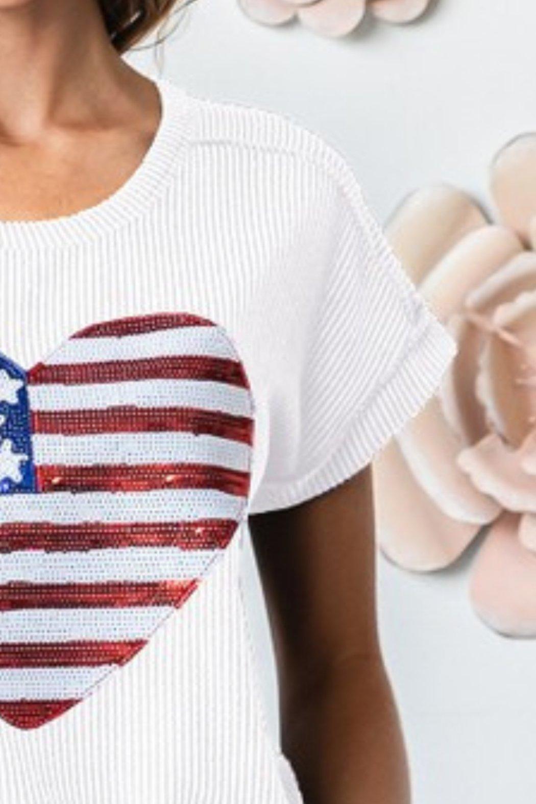 Everyday comfort with a bold, patriotic touch. This fitted ribbed top features soft stretch fabric and a standout American flag patch — perfect for layering or wearing solo.
