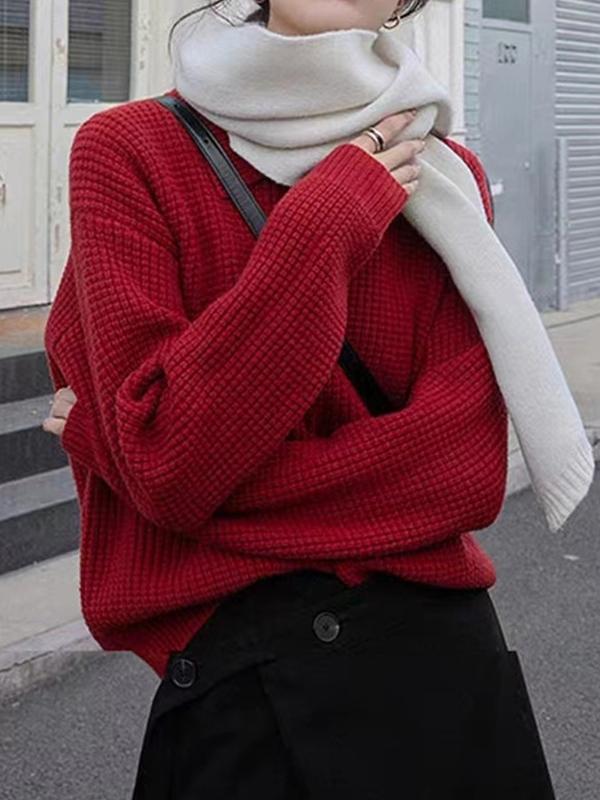 Waffle Knit Round Hem Sweater