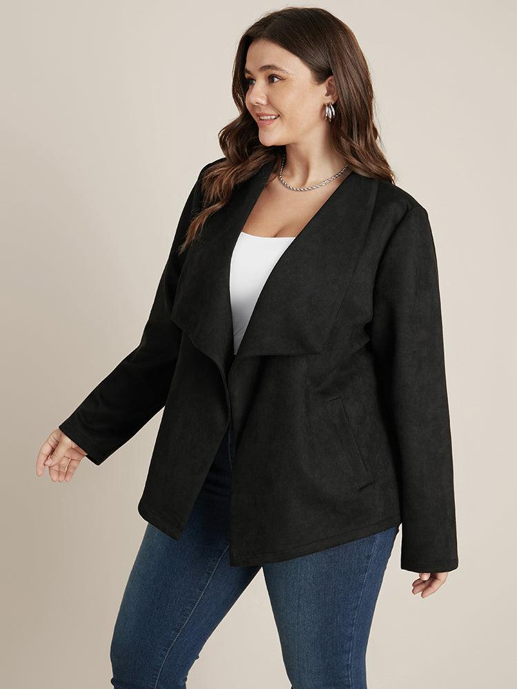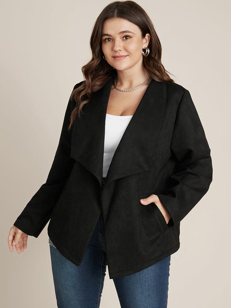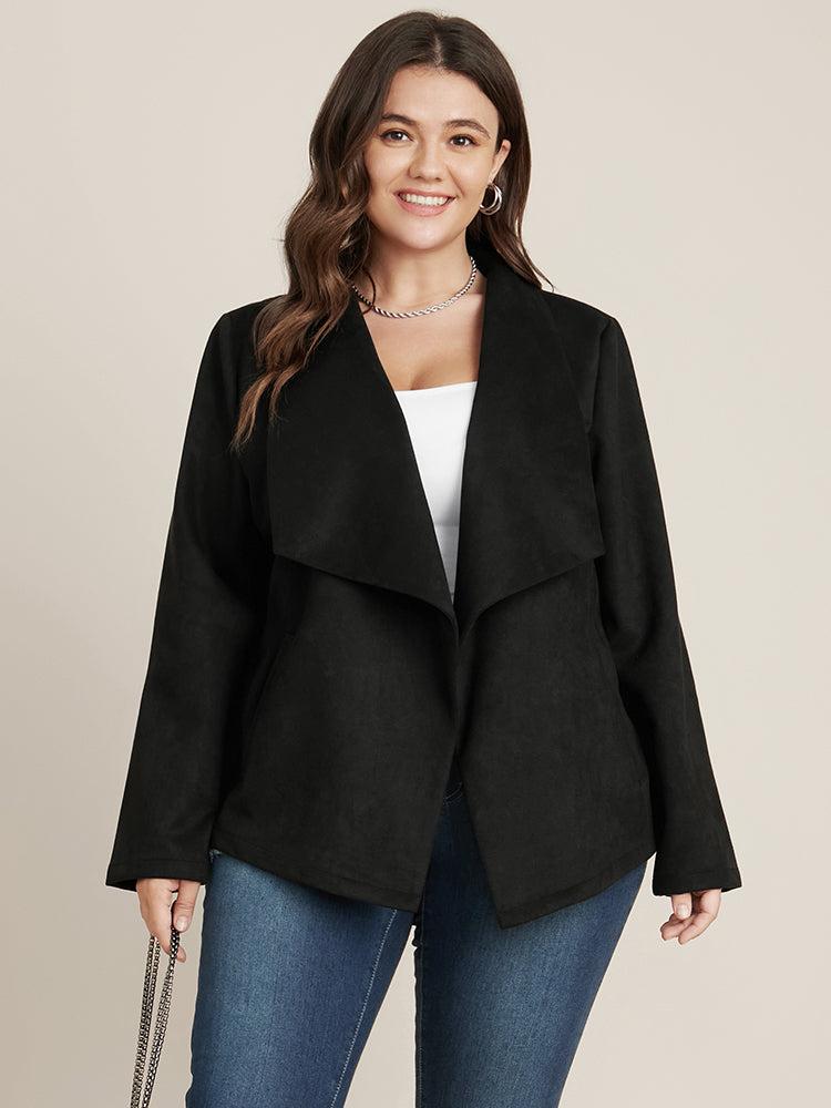 Shop Solid Waterfall Collar Pocket Coat now and redefine your style with confidence at BloomChic. Tailored for mid and plus-size women. This trendy Outerwear Women, sizes 10-30. Season:Winter;Color:Black;Details:Pocket;Pocket:It is perfectly sized to carry a phone.;Belt:No-belt;Lining:No-lining