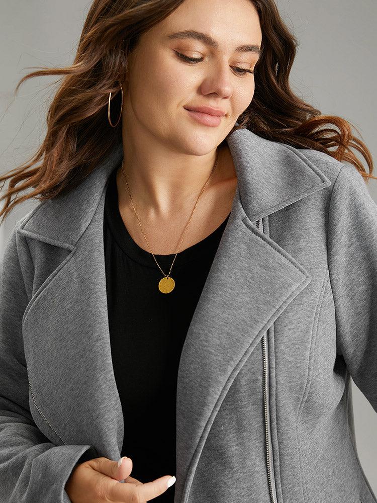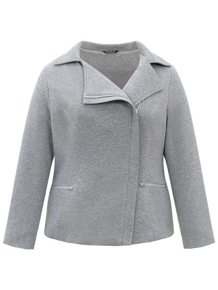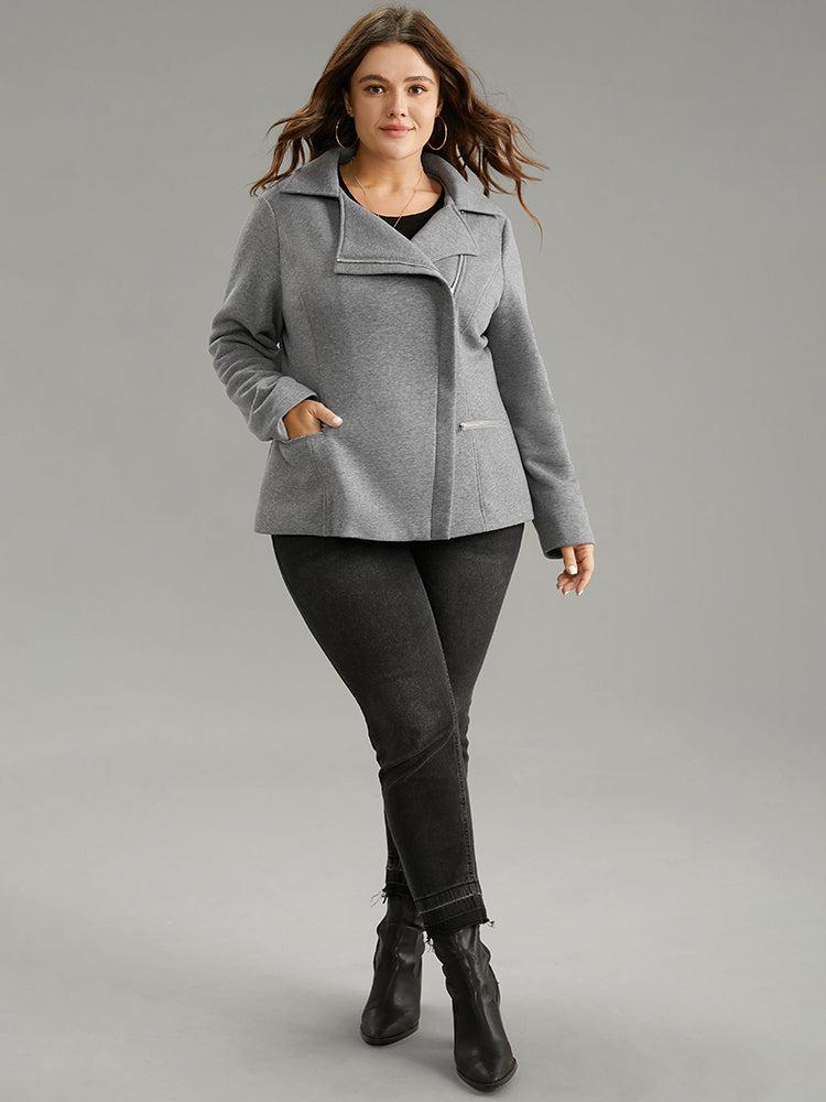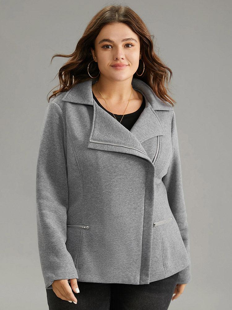 Shop Solid Zipper Asymmetrical Pocket Lapel Collar Coat now and redefine your style with confidence at BloomChic. Tailored for mid and plus-size women. This trendy Outerwear Women, sizes 10-30. Season:Winter;Color:Gray;Style:Casual;Pattern Type:Plain;Details:Pocket, Zipper, Plain, Lined;Pocket:It is perfectly sized to carry a phone.;Belt:No-belt;Closure Type:Zipper;Lining:Lining
