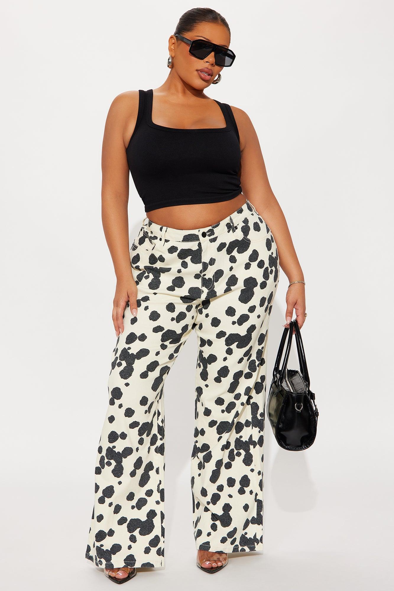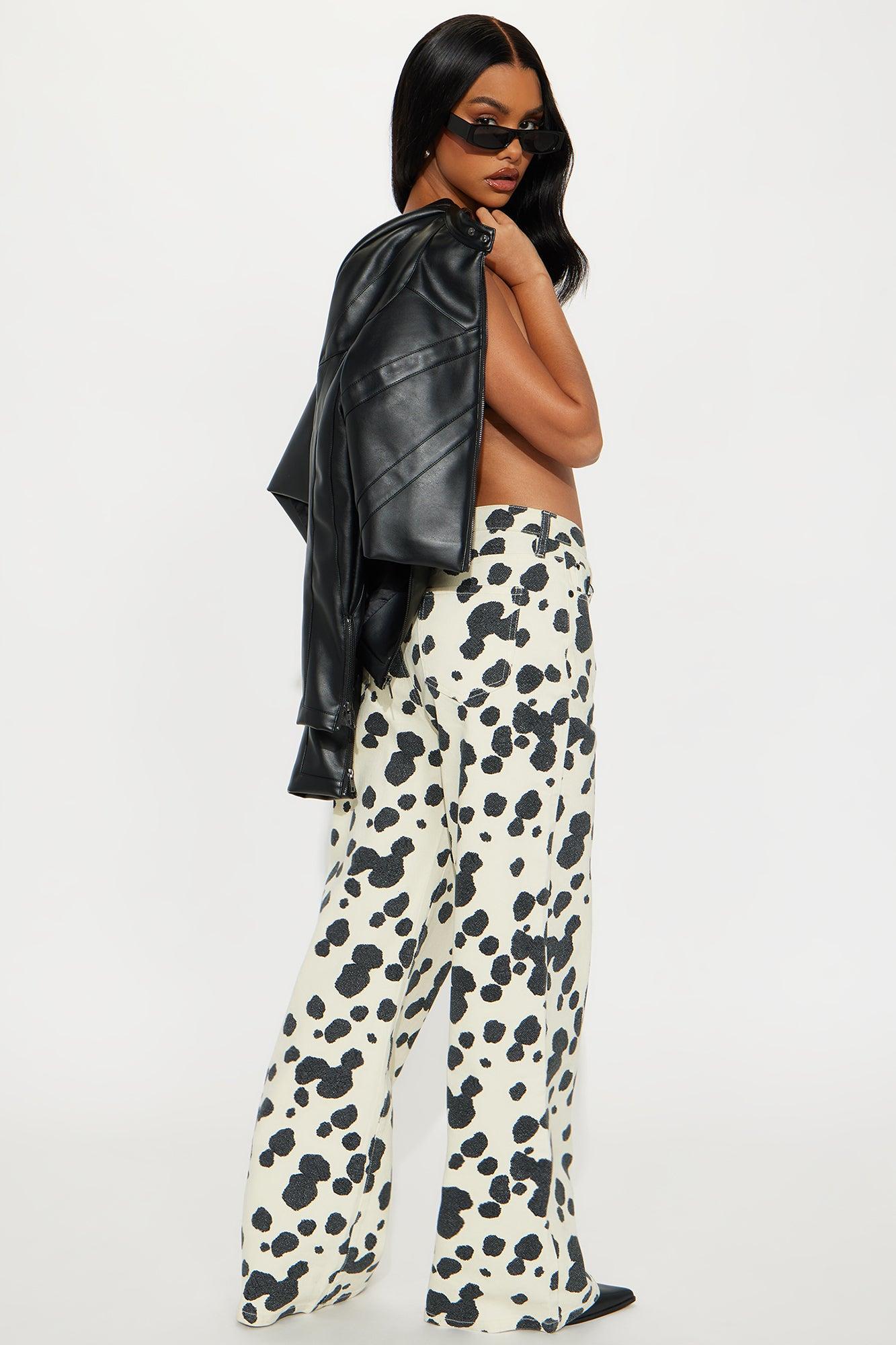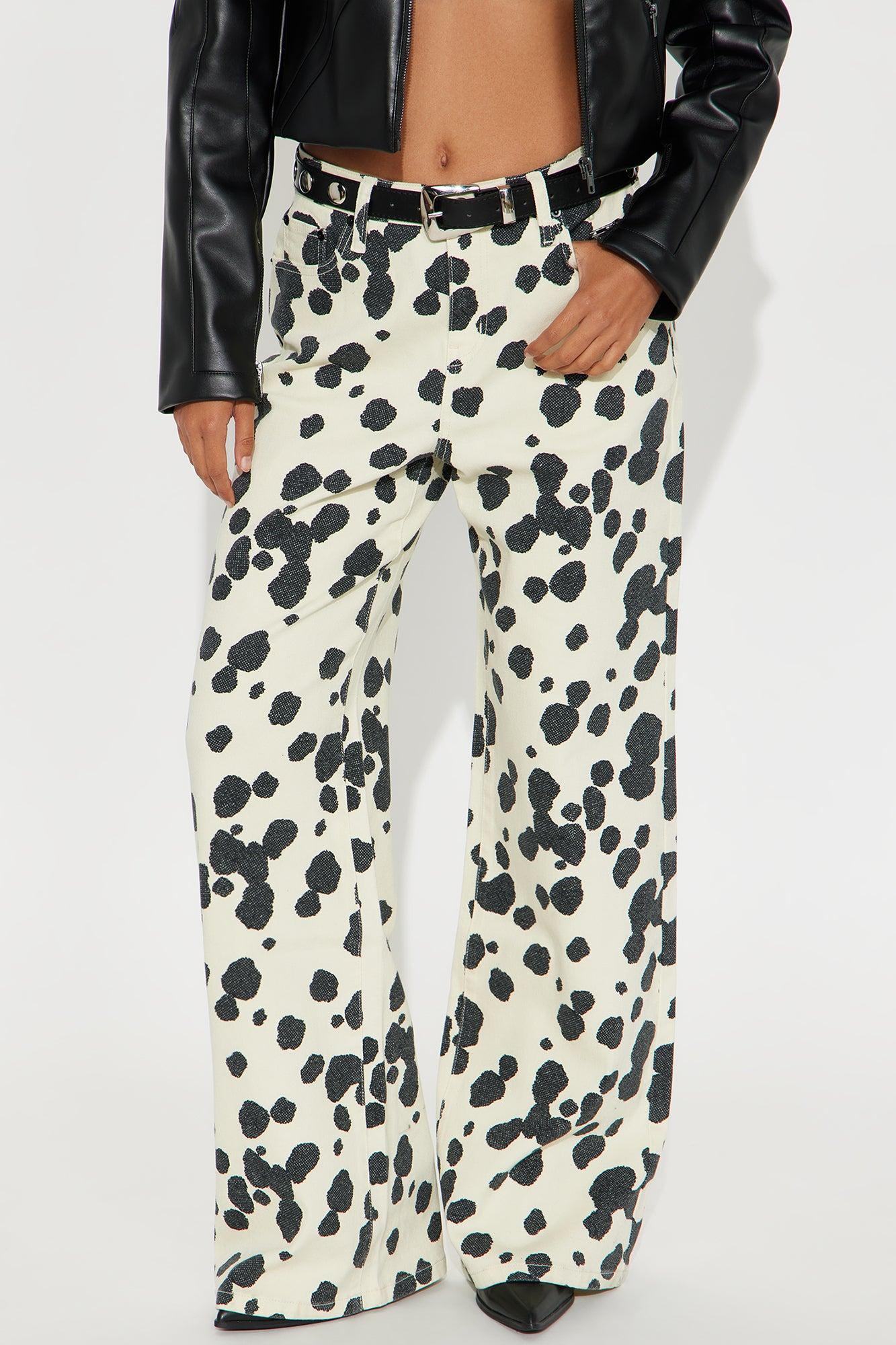 Available In Black/White. Wide Leg Jean 5 Pocket Printed Denim Baggy Fit Drop Waist 11.5" Rise 33" Inseam Medium Stretch Disclaimer Due To The Specialized Wash & Print Process, Each Garment Is Unique. 98% Cotton 2% Spandex Imported California Proposition 65WARNING: Cancer and Reproductive Harm - www.P65Warnings.ca.gov.