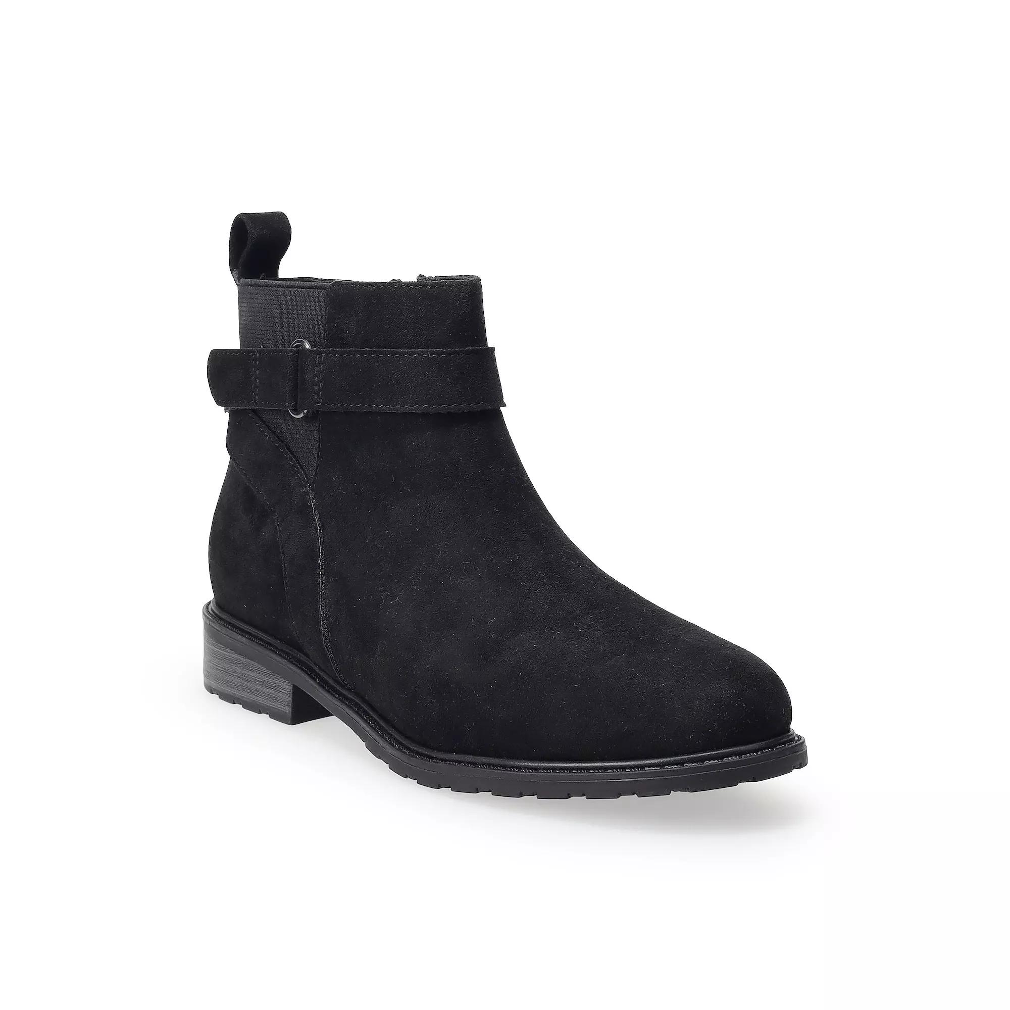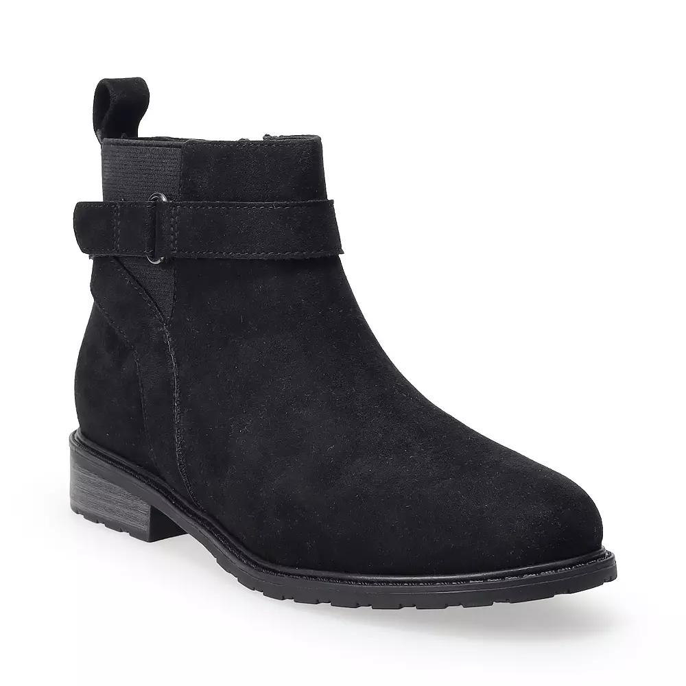 Unleash your style with Sonoma Goods For Life ankle boots, designed for the modern woman who values both comfort and chic aesthetics. Featuring a cushioned memory foam insole and a non-stick sole, these boots offer the perfect blend of support and sophistication—ideal for any occasion, from casual outings to dressier events. Click this FOOTWEAR GUIDE to find the perfect fit and more! - https://www.kohls.com/feature/shoesizeguide.jsp. FEATURES: Belted ankle detail, Nonstick sole. DETAILS: Micro fabric upper, Jersey fabric lining, TPR outsole, Memory foam footbed, Round toe, Zipper closure, Heel height: 1.125-in., Platform height: 1.125-in., Boot shaft height: 10.25-in., Boot shaft circumference: 4-in., Spot clean, Imported. Color: Black. Gender: female. Age Group: adult. Material: SYNTHETIC.