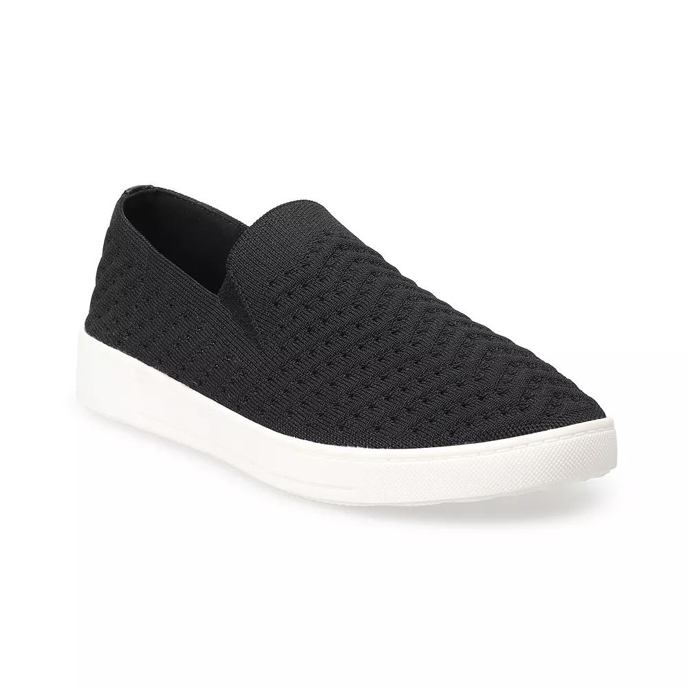Add a comfortable and casual fit in these Sonoma Goods For Life Catahoula slip-on shoes. Click this FOOTWEAR GUIDE to find the perfect fit and more! - https://www.kohls.com/feature/shoesizeguide.jsp. SHOE FEATURES: Breathable textile upper, Durable traction sole. SHOE DETAILS: Textile upper and lining, TPR outsole, Round toe, Slip-on, Padded footbed, Spot clean, Imported. Size: 6. Color: Black. Gender: female. Age Group: adult. Material: SYNTHETIC.