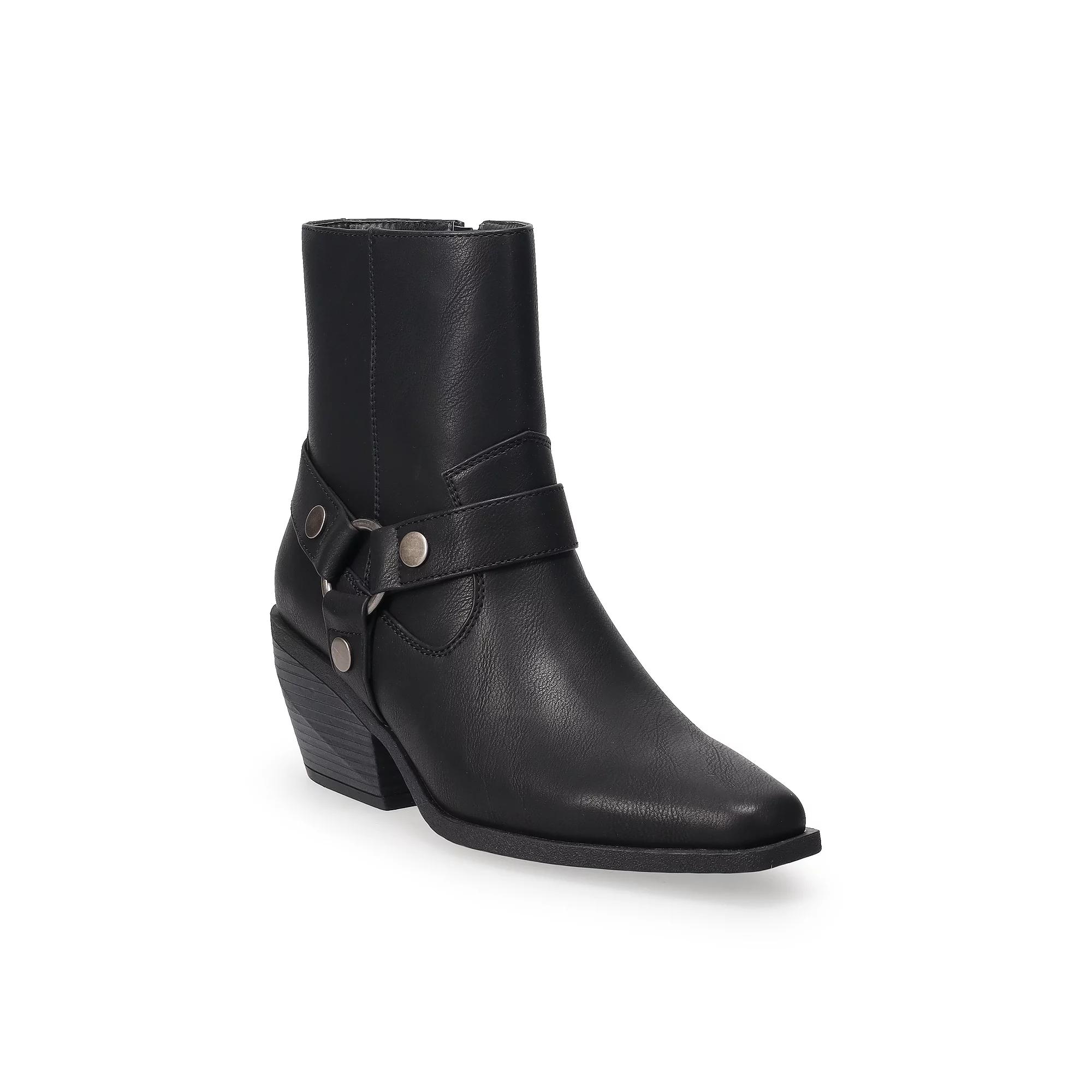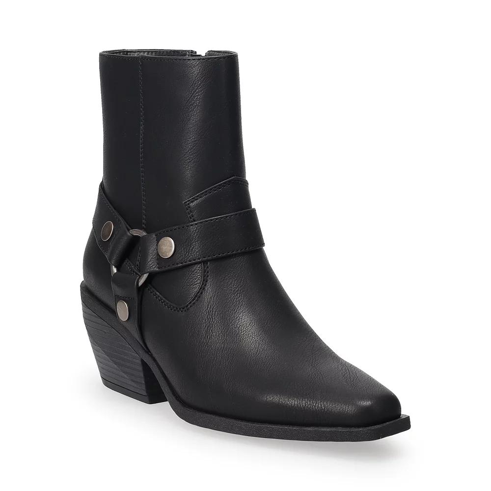 Embrace your inner western spirit with the striking style of Sonoma Goods For Life. These boots combine timeless design with modern flair, making them the perfect addition to both casual and dressy outfits, ensuring every step you take is filled with confidence and charm. Click this FOOTWEAR GUIDE to find the perfect fit and more! - https://www.kohls.com/feature/shoesizeguide.jsp. FEATURES: Stylish western design with harness detailing, Durable construction for long-lasting wear. DETAILS: Square toe, Zipper closure, 2.09" heel height, Flex groove outsole, Imported. FIT & SIZE: Mid-calf design, Shaft circumference: 11.02 inches, Shaft height: 5.71 inches. MATERIAL & CARE: Fabric and PU upper, Foam footbed, Textile lining, TPR outsole with fabric, Spot clean. Color: Black. Gender: female. Age Group: adult. Material: SYNTHETIC.