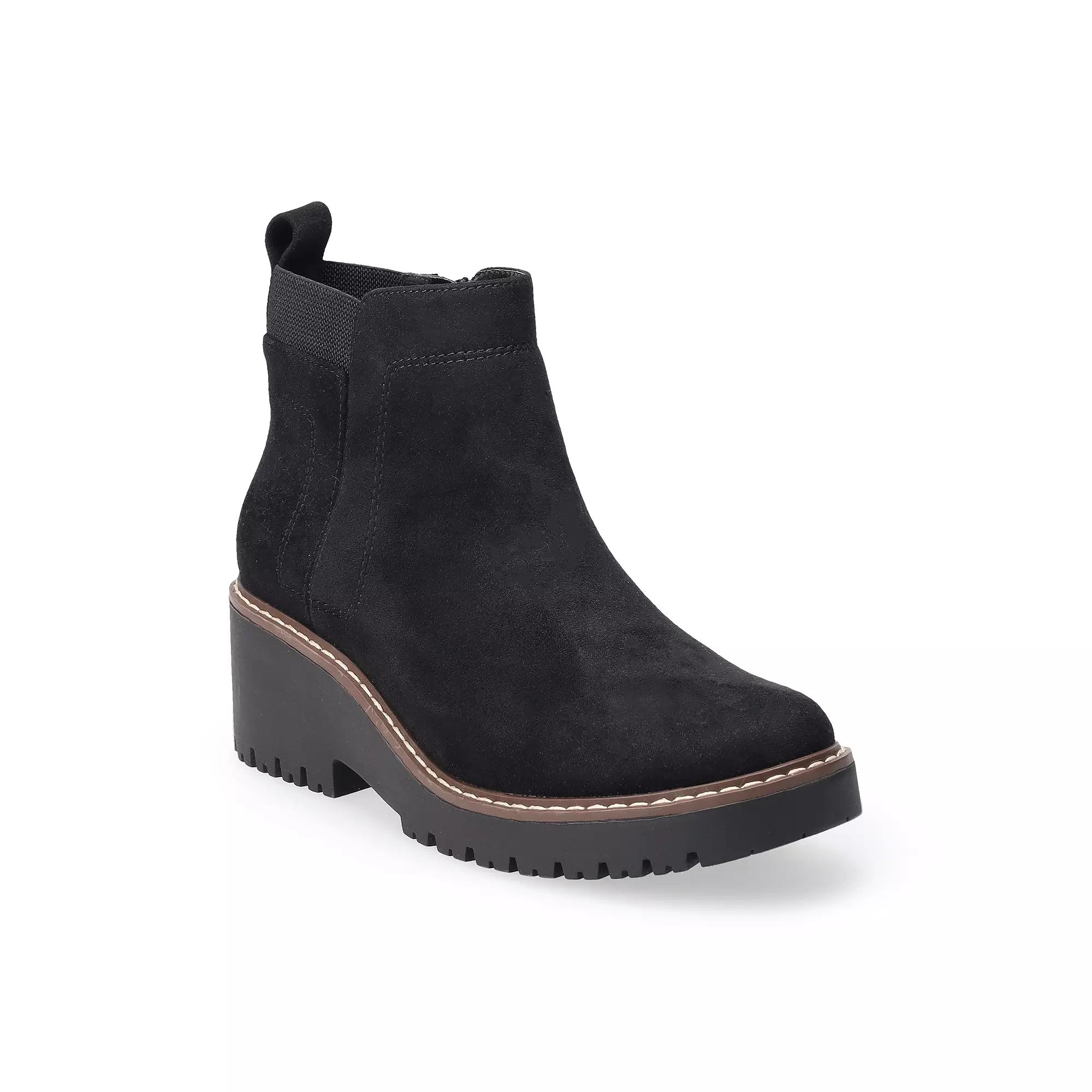 These Wedge Gore Women's ankle boots from Sonoma Goods For Life are perfect for everyday wear! Click this FOOTWEAR GUIDE to find the perfect fit and more! - https://www.kohls.com/feature/shoesizeguide.jsp. FEATURES: Comfortable footbed for all day wear, Classic bootie silhouette. DETAILS: Micro fabric upper and lining, TPR outsole, Plain toe, Zipper closure, Ortholite foam footbed, Lug outsole, 2.025-in. heel height, 2.062-in. platform height, 4.125-in. boot shaft height, 10.125-in. boot shaft circumference, Spot clean, Imported. Size: 6. Color: Black2. Gender: female. Age Group: adult. Material: SYNTHETIC.