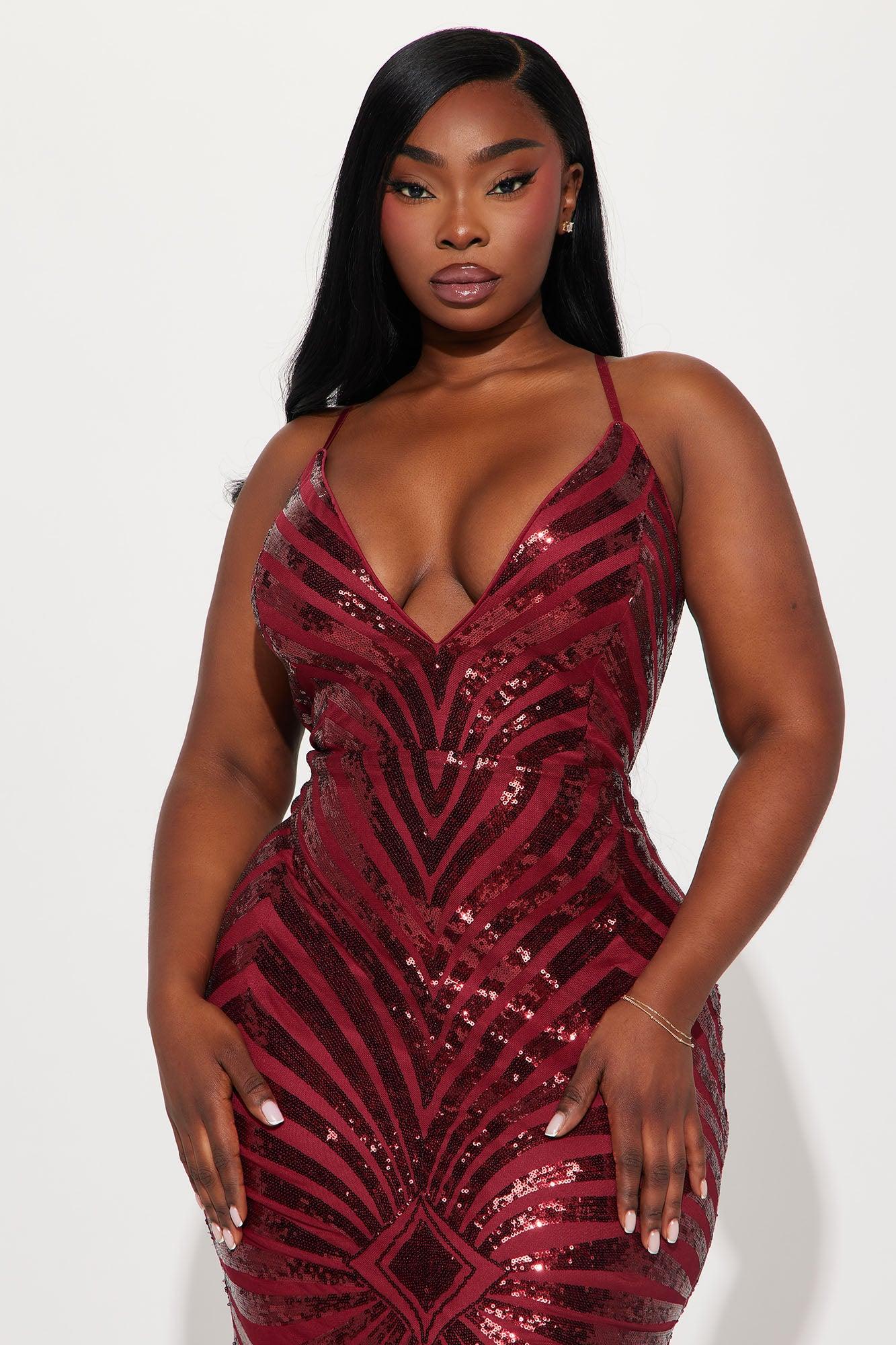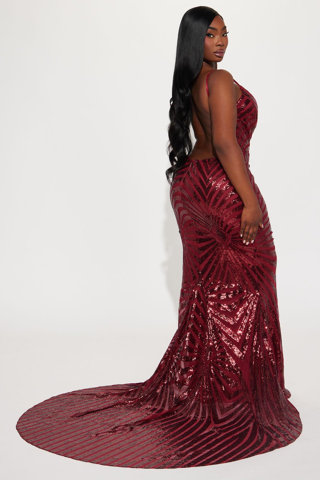 Sonya Backless Sequin Gown - Wine