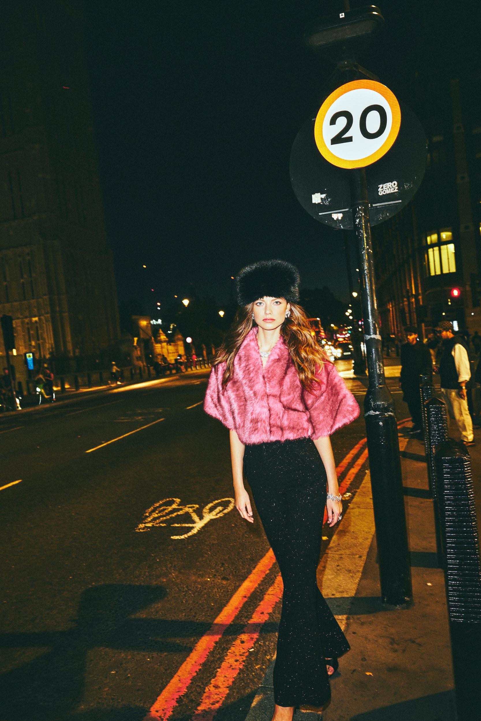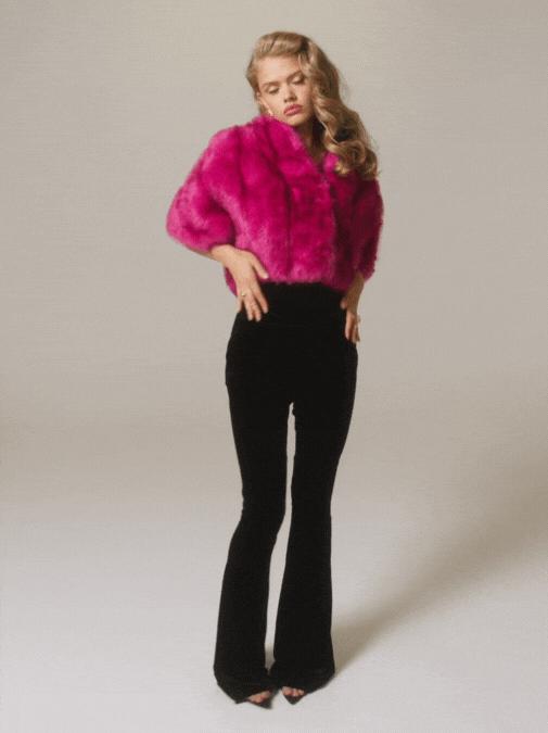 Cropped fur coats are our muse this season. Made of high-quality, environementally-friendly fur fabric, this chic coat is a perfect addition to your wardrobe. Its cropped design adds playfulness while the plush material adds warmth. Faux eco-friendly fur Cropped design Buckle included Dry clean only