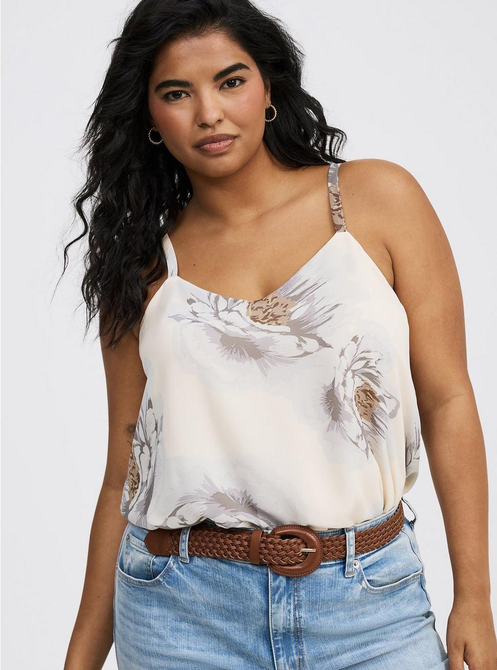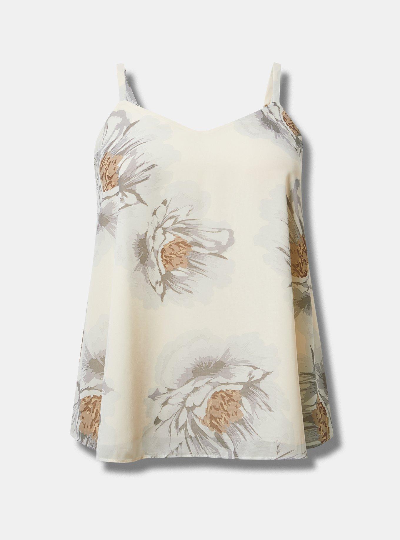 FITAdjustable straps.Relaxed fit.Measures 30'' from shoulder (size 2).MATERIALS + CAREChiffon woven fabric: A semi-sheer, lightweight fabric that drapes beautifully.Stretch level: None.100% polyester.Machine wash cold. Dry low.Imported.DETAILSV-neck; V-back.Sleeveless. WHY WE LOVE ITWhether you style it on its own or with your favorite jacket, this lightweight top is not only stylish, but also a customer favorite.
