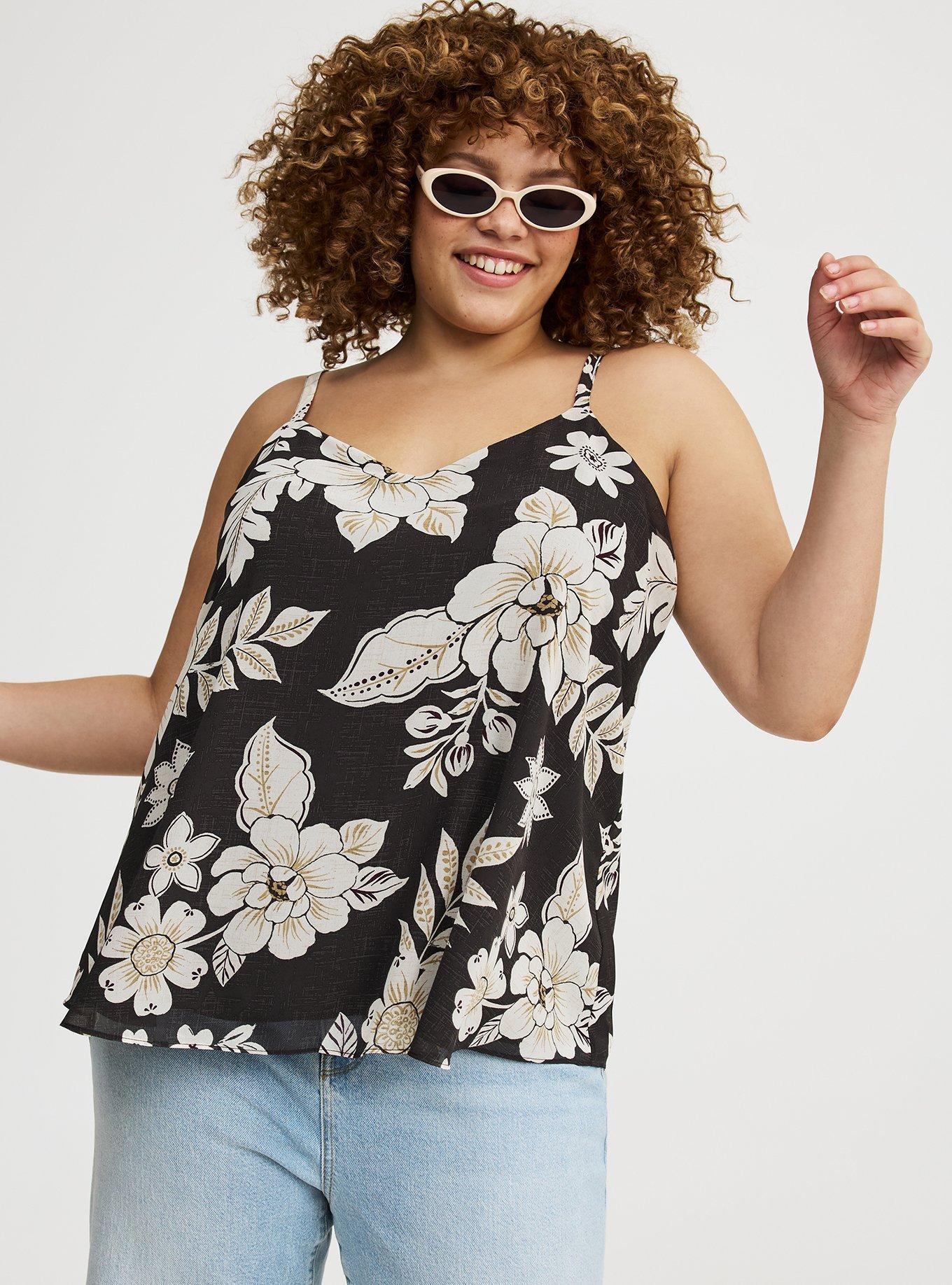 FITAdjustable straps.Relaxed fit.Measures 30'' from shoulder (size 2).MATERIALS + CAREChiffon woven fabric: A semi-sheer, lightweight fabric that drapes beautifully.Stretch level: None.100% polyester.Machine wash cold. Dry low.Imported.DETAILSV-neck; V-back.Sleeveless. WHY WE LOVE ITWhether you style it on its own or with your favorite jacket, this lightweight top is not only stylish, but also a customer favorite.