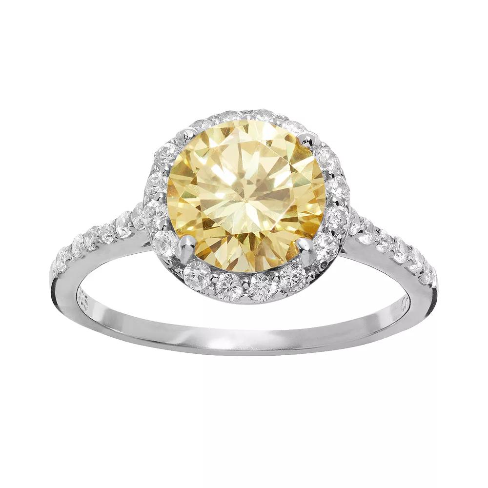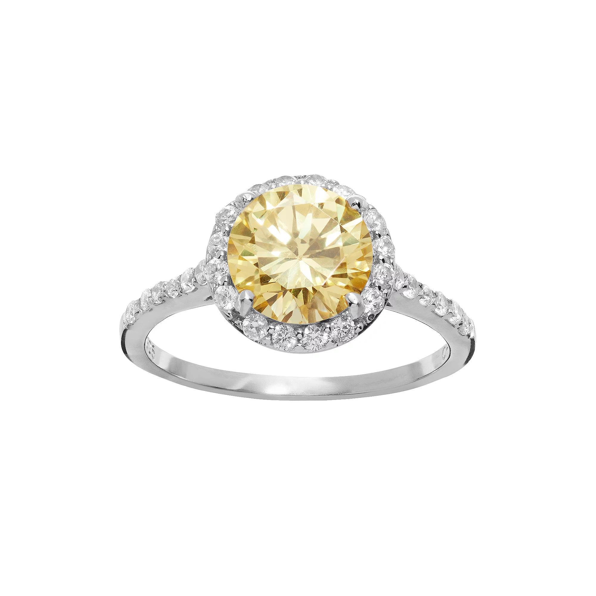 Sophie Miller Canary & White Cubic Zirconia Sterling Silver Halo Ring, Women's,