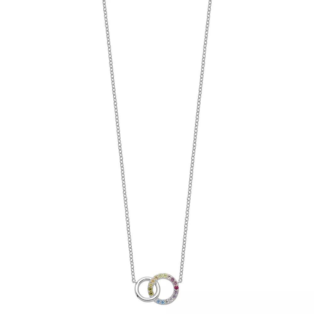 Add a dash of colorful glam to your style with this Sophie Miller intertwined circle necklace. Add a dash of colorful glam to your style with this Sophie Miller intertwined circle necklace. Metal: sterling silver Chain length: 16 in. + 2-in. extender Packaging: boxed Plating: rhodium Finish: polished Pendant size: 3/8"L x 5/8"W Chain type: cableSTONE DETAILS Stone type: cubic zirconia Total weight: 1/2 ct. Shape: round Setting: prong na Gemstones may have been treated to enhance their appearance. Special care may be required. Please visit our Gemstone Treatment & Special Care Guide for more information. Size: 16". Color: Multicolor. Gender: female. Age Group: adult.