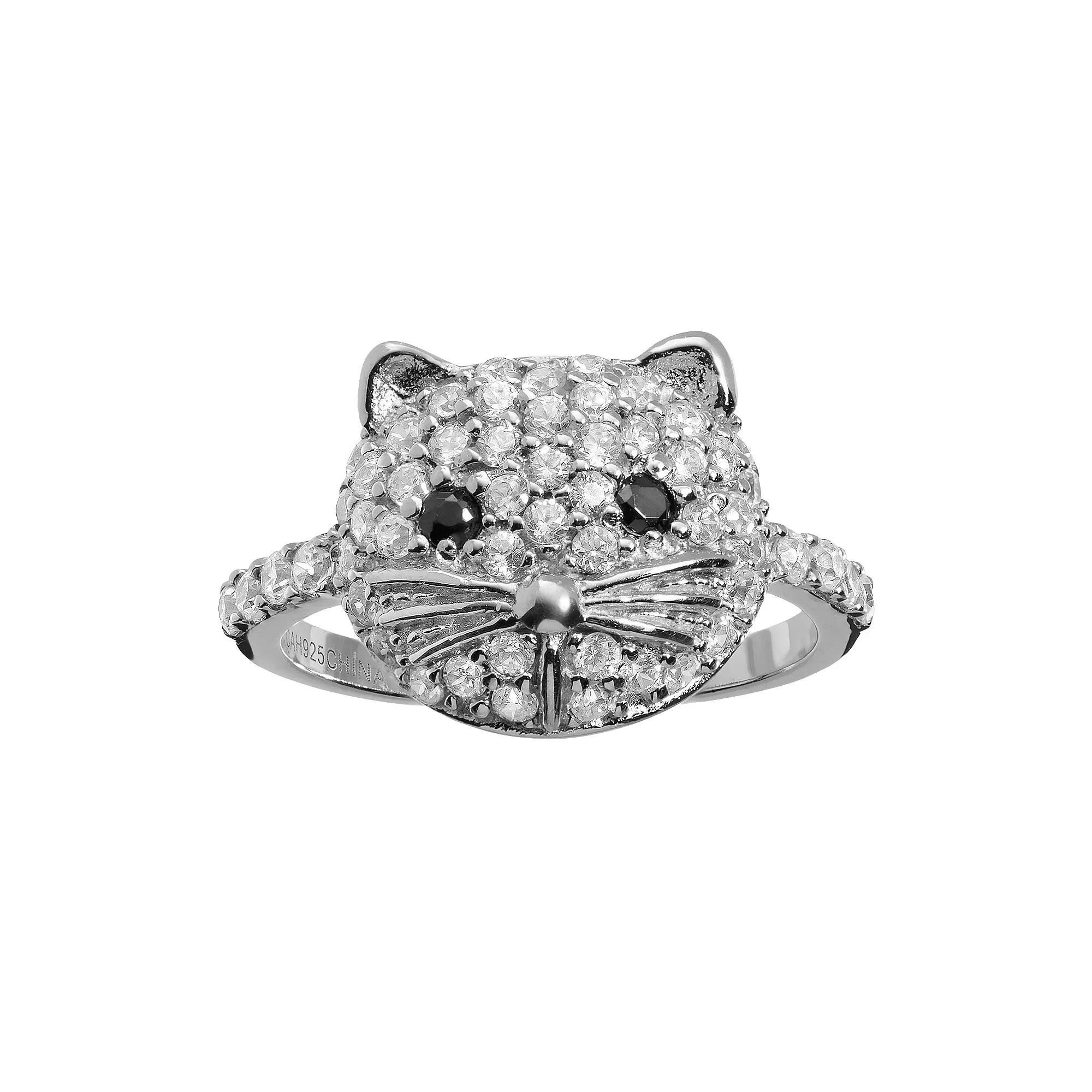Sophie Miller Cubic Zirconia Sterling Silver Cat Ring, Women's, Size: 5, Black