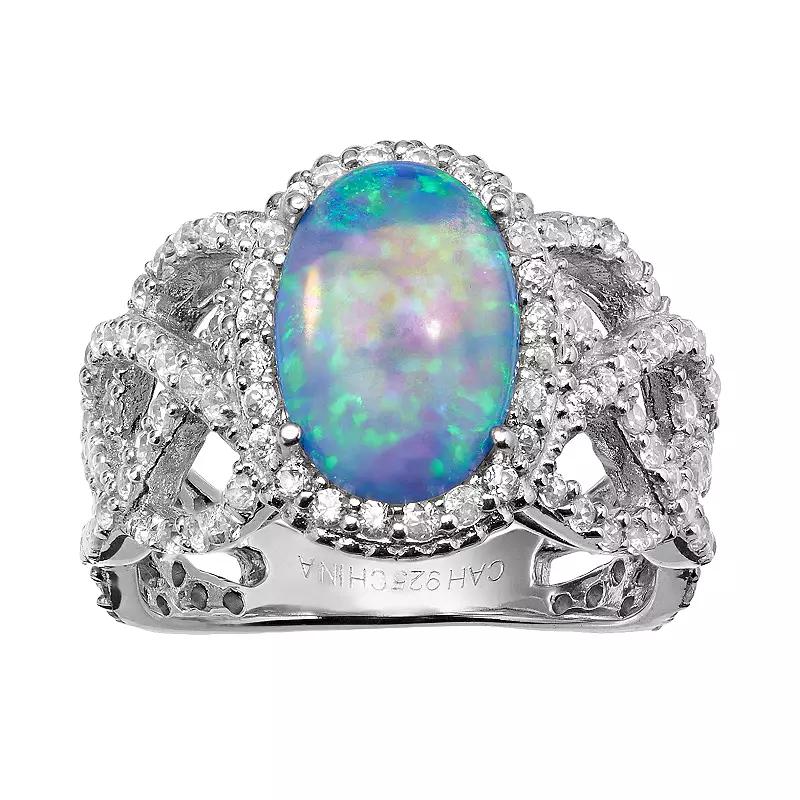 Sophie Miller Lab-Created Blue Opal & Cubic Zirconia Sterling Silver Halo Openwork Ring, Women's,