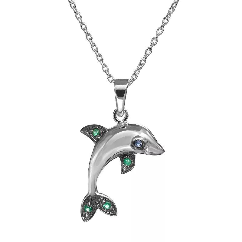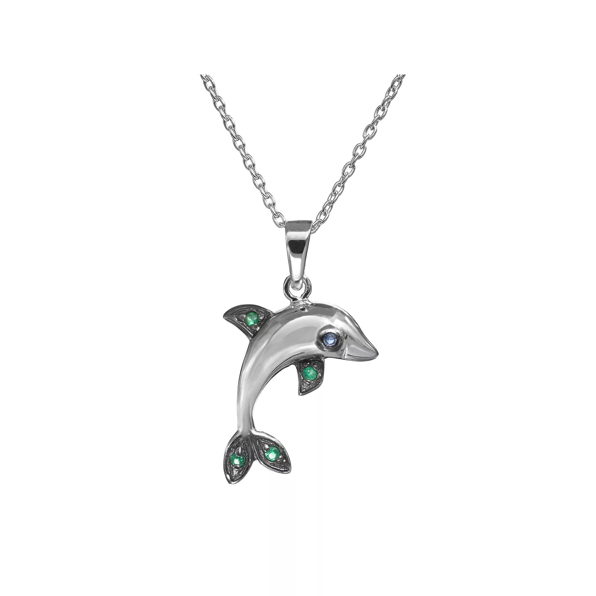 PENDANT DETAILS Pendant length: 1 in. Chain length: 16 in. with 2 in. extender Clasp: lobster-claw Metal: white rhodium-plated sterling silver, black rhodium-plated sterling silver STONE DETAILS Stone type: simulated emerald, simulated sapphire Cut: round Setting: prong, flush Size: 18". Color: Multicolor. Gender: female. Age Group: adult.