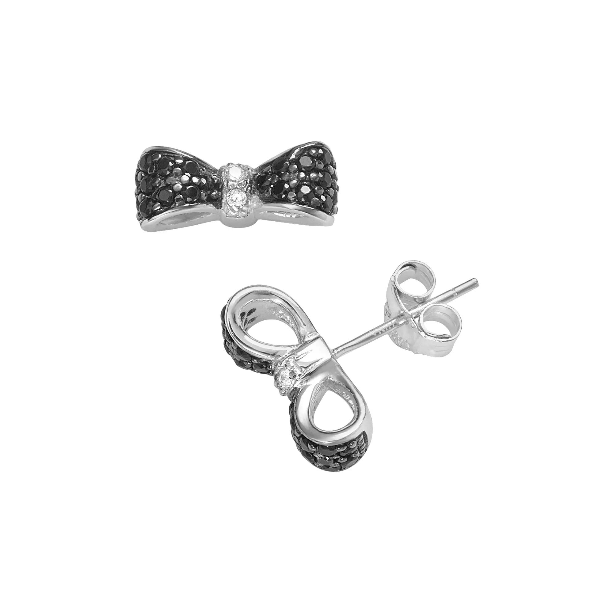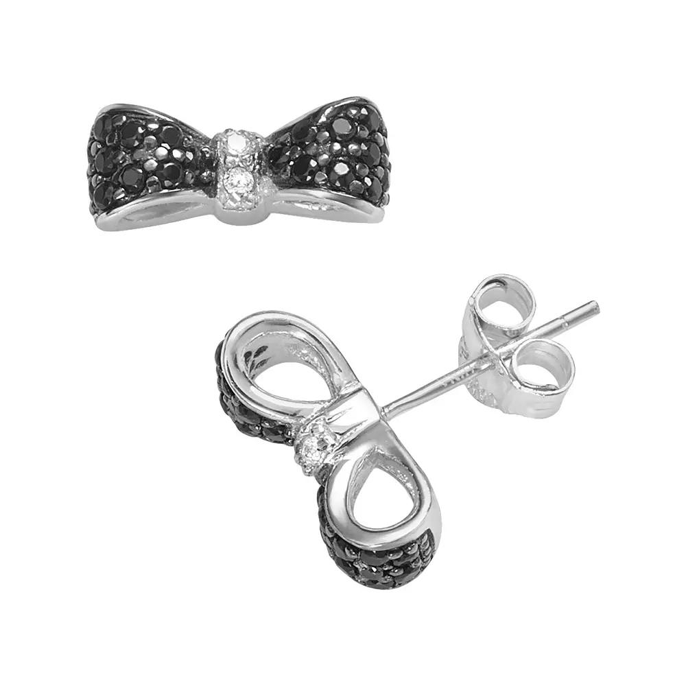 Sophie Miller Sterling Silver Black & White Cubic Zirconia Bow Stud Earrings, Women's