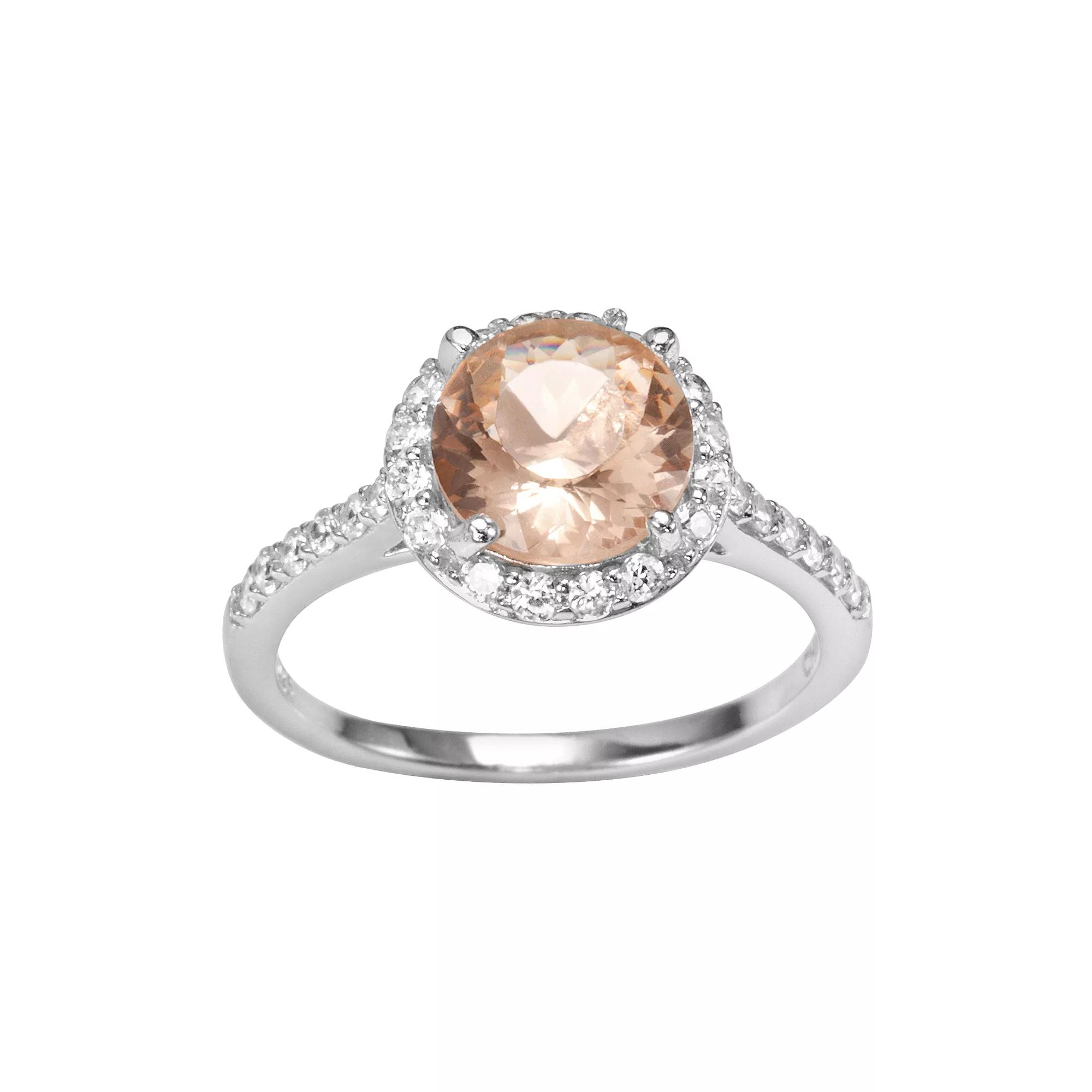 Ring Details: Width: 10 mm Metal: rhodium-plated sterling silver Stone Details: Stone type: simulated morganite Cut: round Setting: prong Cubic Zirconia Details: Cut: round Setting: prong Size: 9. Color: Pink. Gender: female. Age Group: adult.