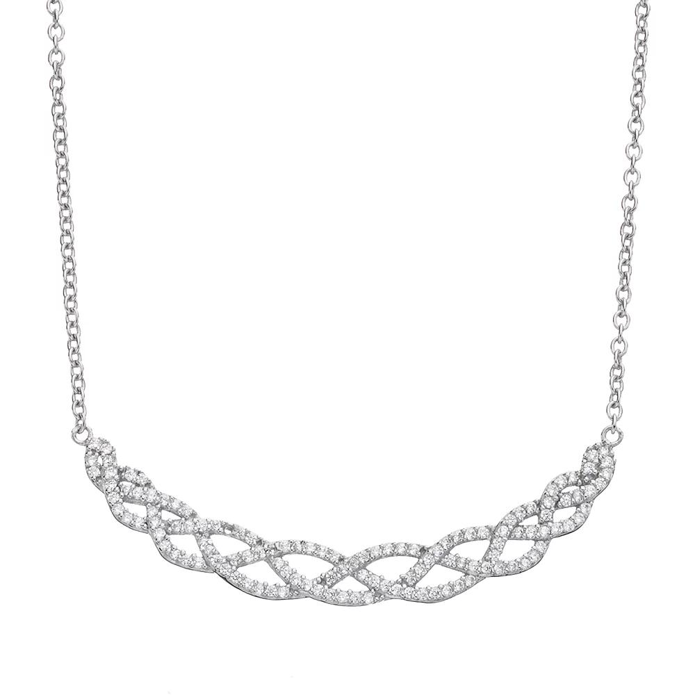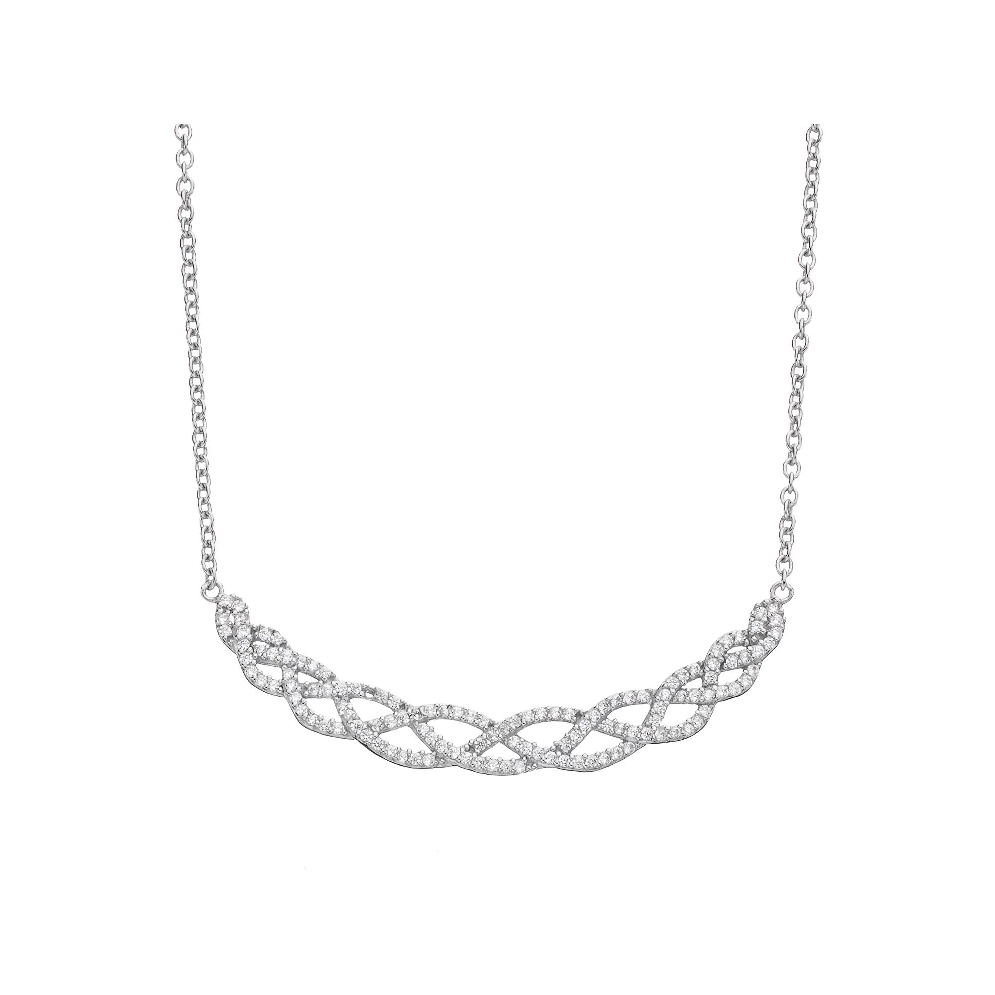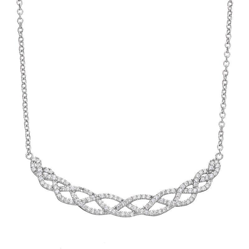 Adorned with a woven link accentuated with round-cut cubic zirconia stones, this necklace abounds with ornate appeal. Comes in a gift box.NECKLACE DETAILS Length: 16 in. with 2-in. extender Clasp: spring-ring Metal: sterling silver CUBIC ZIRCONIA DETAILS Shape: round Setting: prong Size: 16. Color: White. Gender: female. Age Group: adult.