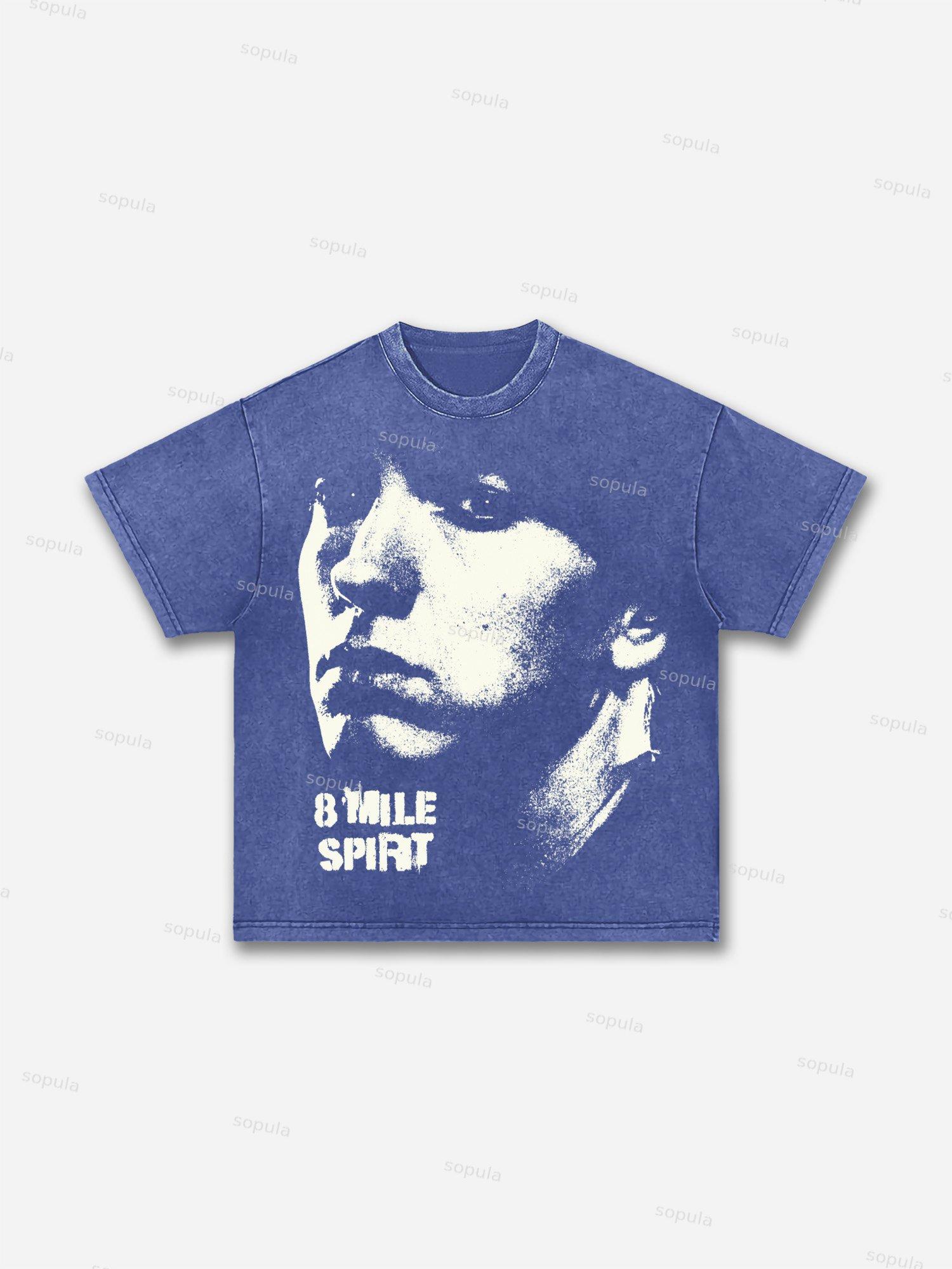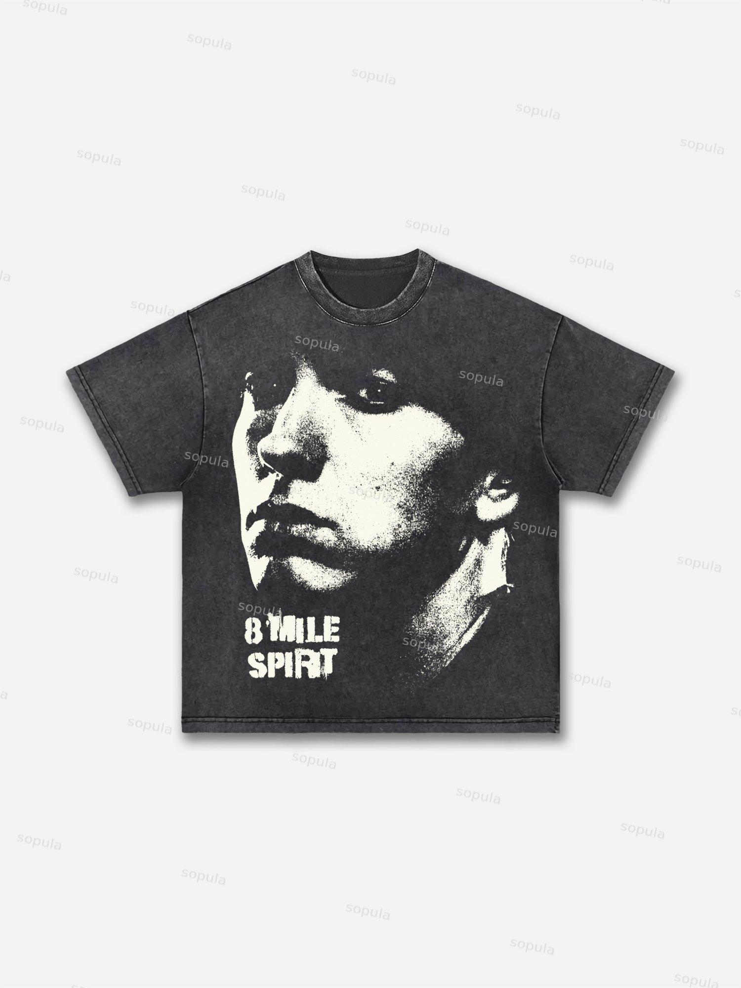Sopula 8 Mile Spirit Vintage Portrait Graphic Washed T-shirt. SPU: CP-219722-WJY Fabric Name: 100% Cotton Pattern: Portrait Graphic Process: Printed Style: Retro Length: Regular Collar: Round Neck Popular Elements: Washed Sleeve Type: Short Sleeve Occasion: Street, Daily Theme: Summer Size Shoulder Bust Length Sleeve cm inch cm inch cm inch cm inch M 55 21.5 112 43.7 71 27.7 21.5 8.4 L 58 22.6 118 46.0 74 28.9 23 9.0 XL 61 23.8 124 48.4 77 30.0 24.5 9.6 2XL 64 25.0 130 50.7 80 31.2 26 10.1 3XL 67 26.1 136 53.0 83 32.4 27.5 10.7 Due to manual measurement, there may be an error of 1-3cm