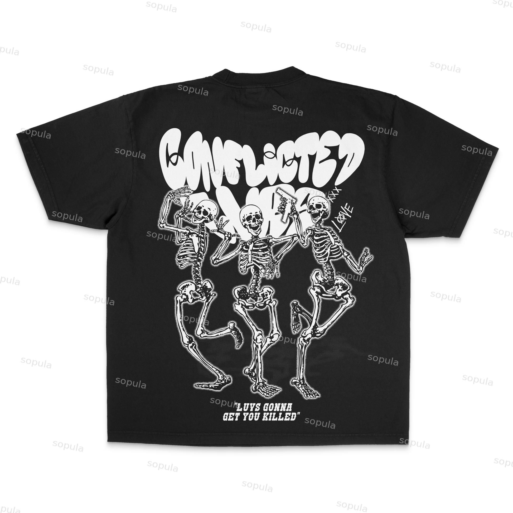 Sopula Conflicted Skelly Heart Skull Print Graphic T-Shirt. SPU: DZ-78660-QYP Fabric Name: 100% Cotton Pattern: Skull Print Process: Printed Style: Fashion Length: Regular Collar: Round Neck Popular Elements: Skull Print Sleeve Type: Short Sleeve Occasion: Daily, Street Theme: Summer
