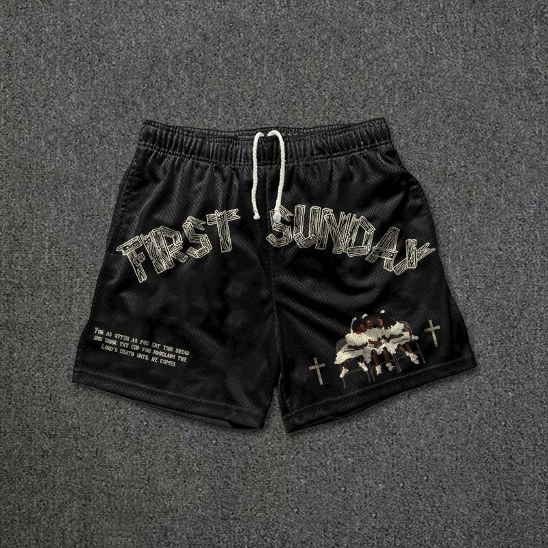 SPU: CP-144380-HWE Fabric: P olyester Pattern: First Sunday Faith Graphic Process: Printed Style: Retro Length: Short Popular Elements: Drawstring, Mesh Occasion: Daily, Street Theme: Summer