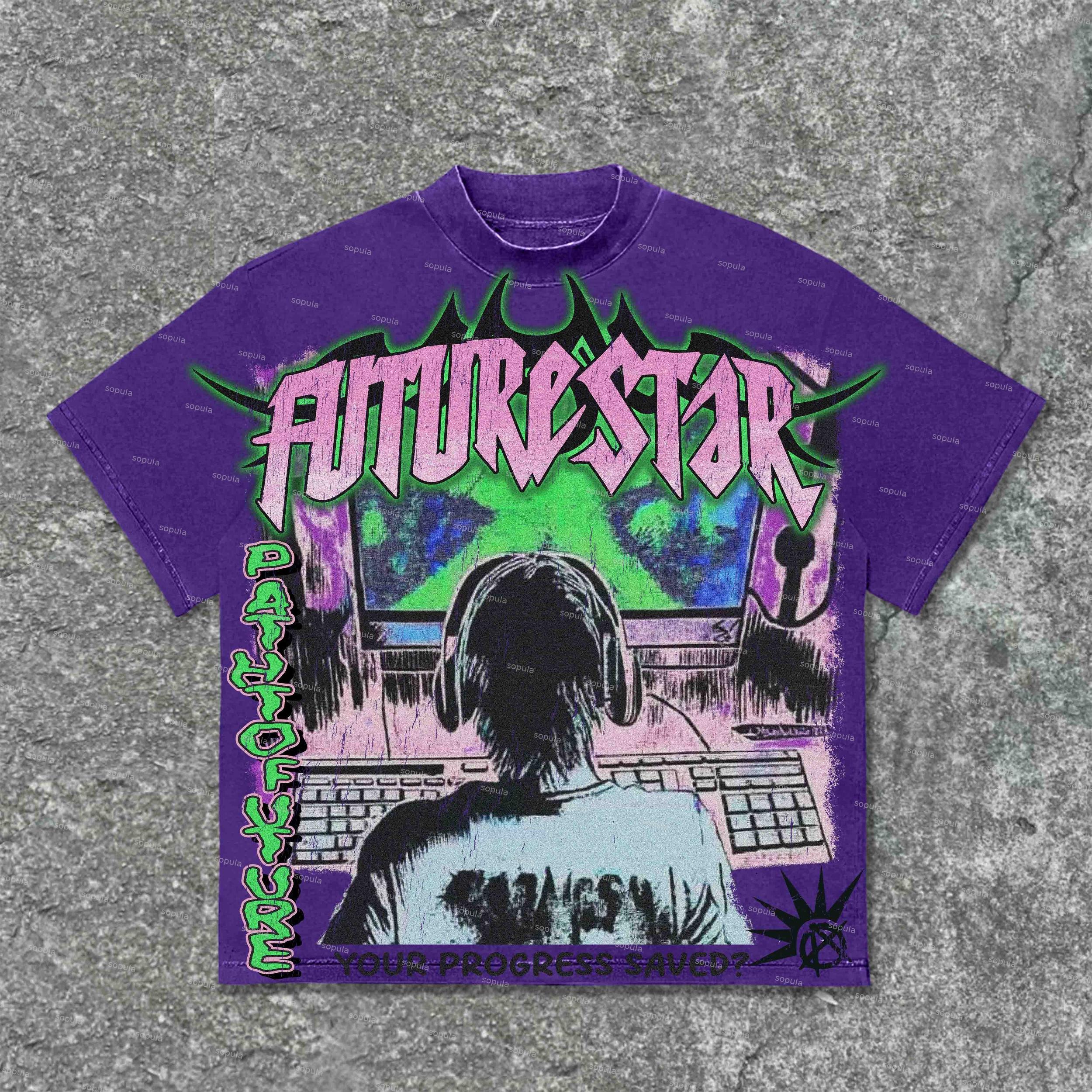 Sopula Future Star Your Progress Saved Cotton T-Shirt. SPU: CP-172159-ZLJ Fabric Name: 100% Cotton Pattern: Your Progress Saved Process: Printed Style: Vintage Length: Regular Collar: Round Neck Popular Elements: Hellstar Print Sleeve Type: Short Sleeve Occasion: Street, Daily Theme: Summer