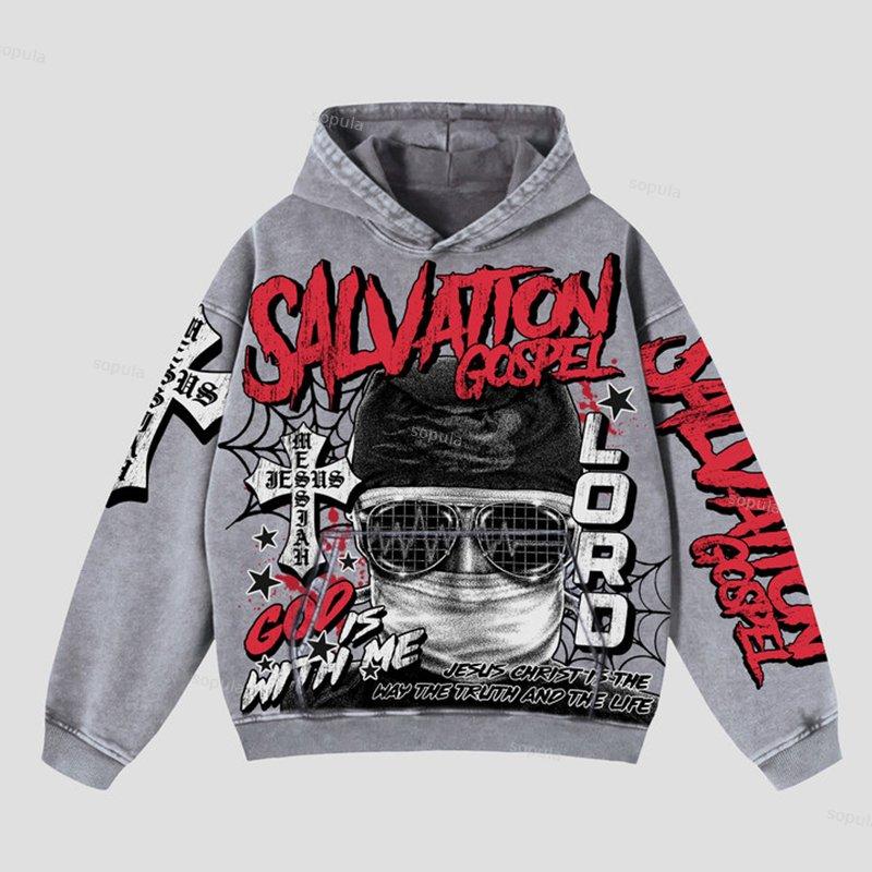 Sopula God Savior Old Retro Graphic Hooded Sweatshirt. SPU: CP-161633-ZYL Fabric Name: 100% Cotton Pattern: God Savior Process: Printed Style: Vintage Length: Regular Collar: Hoodie Collar Popular Elements: Pocket, Old Retro Graphic Sleeve Type: Drop Shoulder Sleeve Occasion: Daily, Street Theme: Fall, Winter