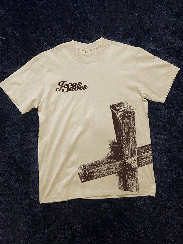 Sopula Jesus Saves Cross Print Graphic T-Shirt