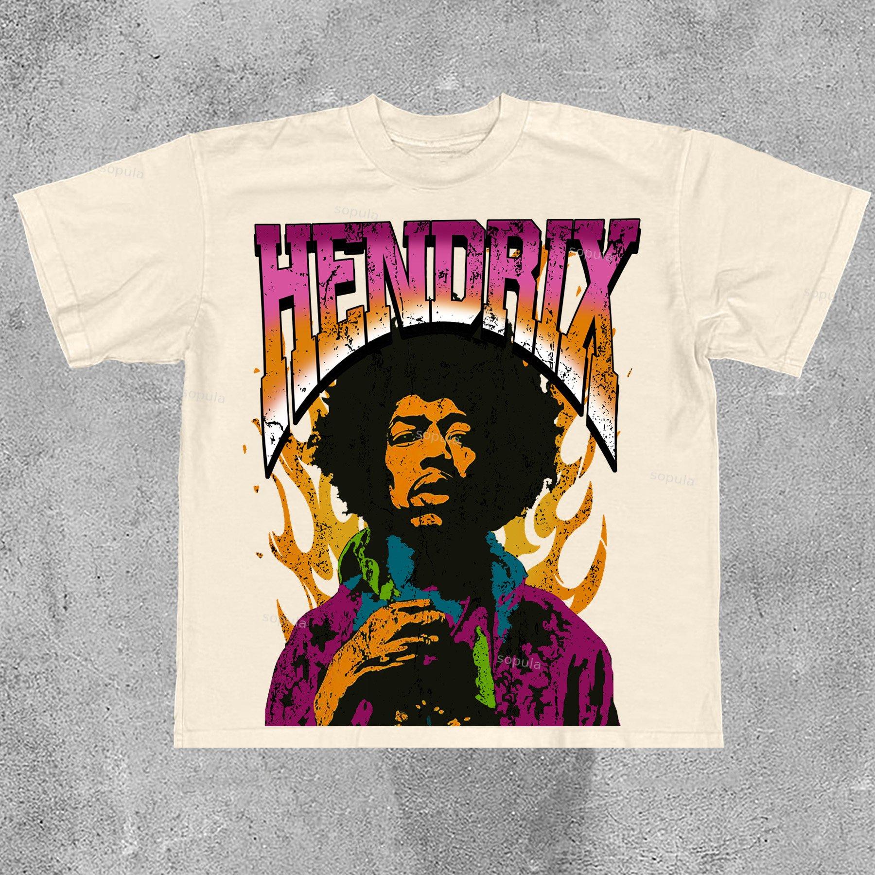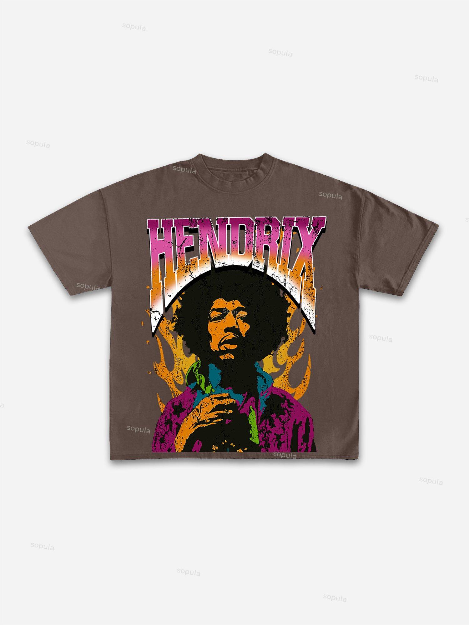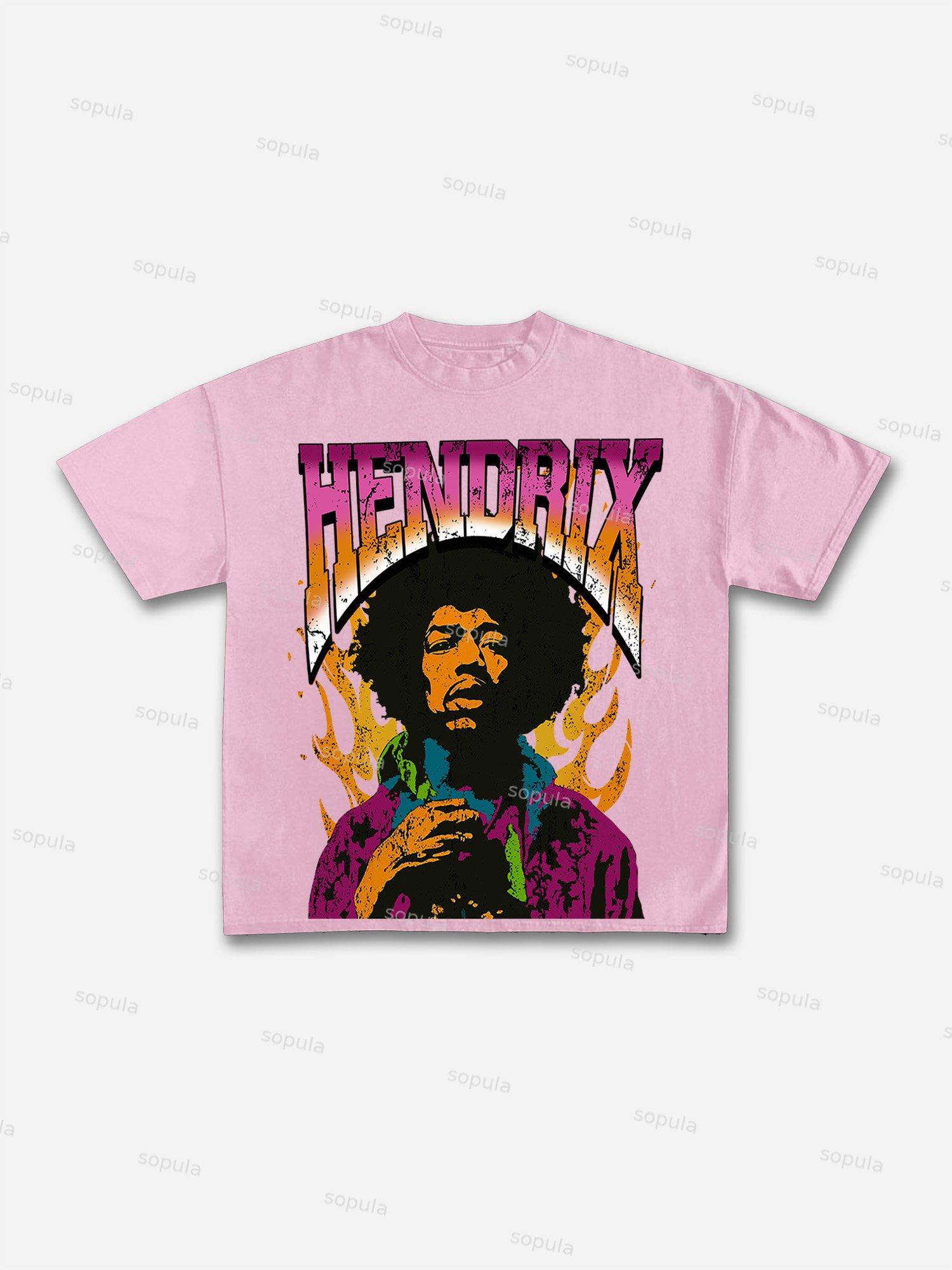 Sopula Hendrix Fashion Guitarist Graphic Print Cotton T-Shirt