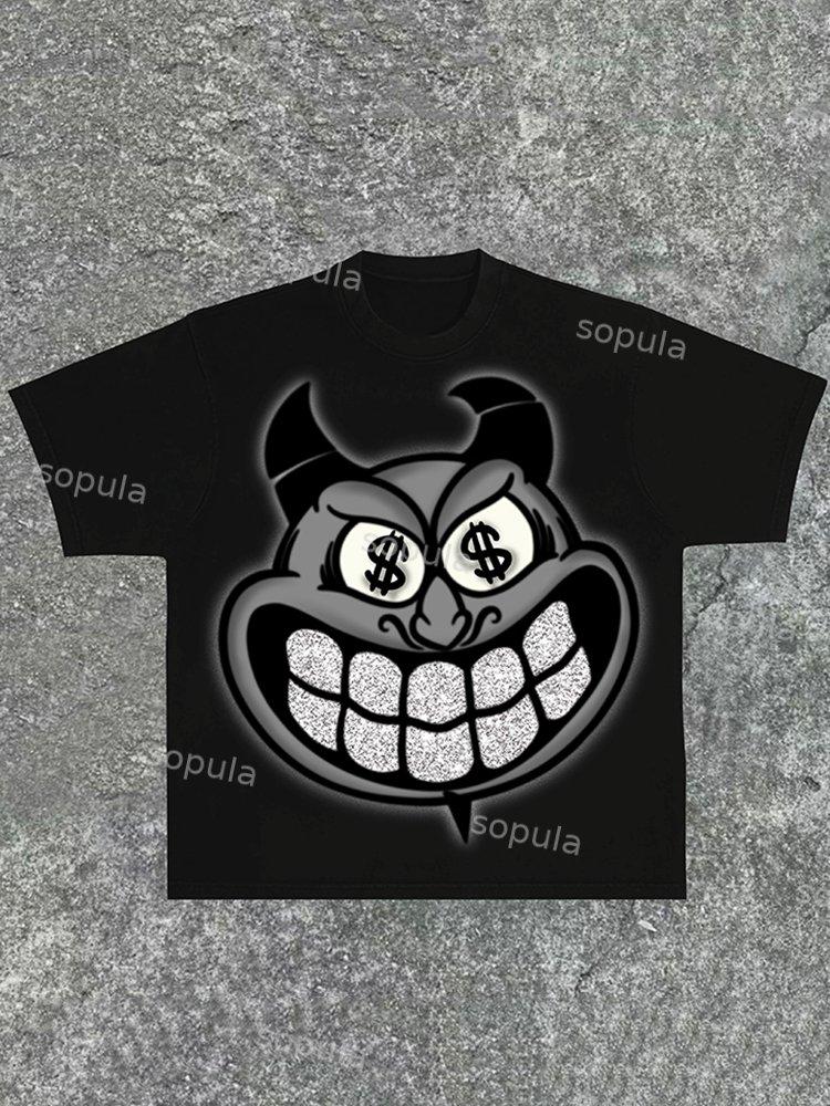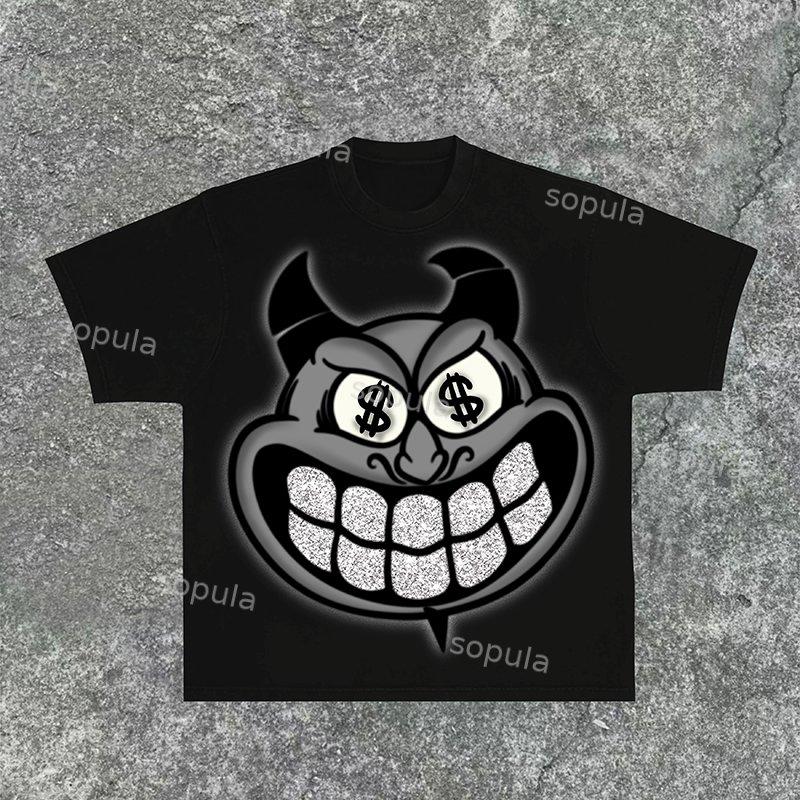SPU: CP-128839-WYP Fabric Name: 100% Cotton Pattern: The Devil Print Process: Printed Style: Casual Length: Regular Collar: Round Neck Popular Elements: Devil Print Sleeve Type: Short Sleeve Occasion: Street Theme: Summer