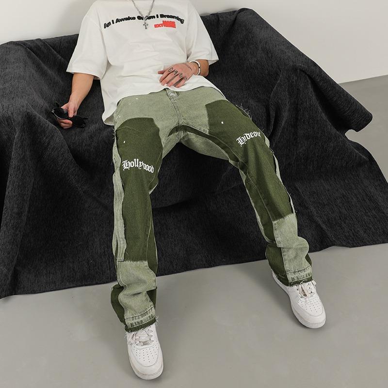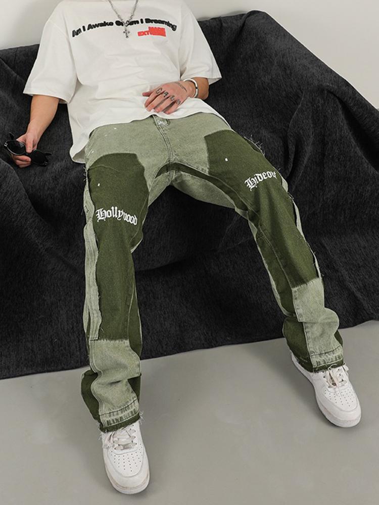 Sopula Men's Vintage Patchwork Washed Micro Flare Jeans
