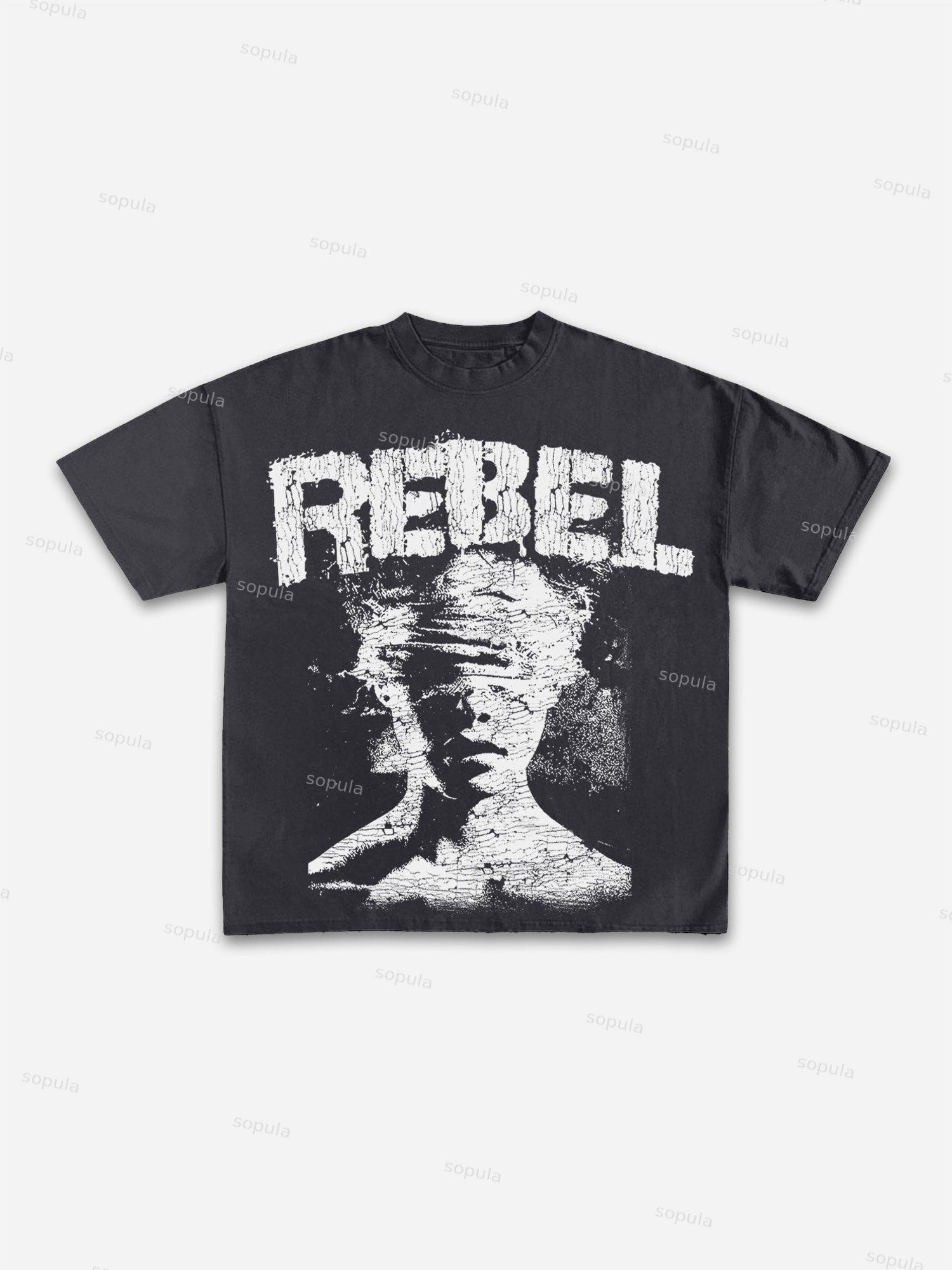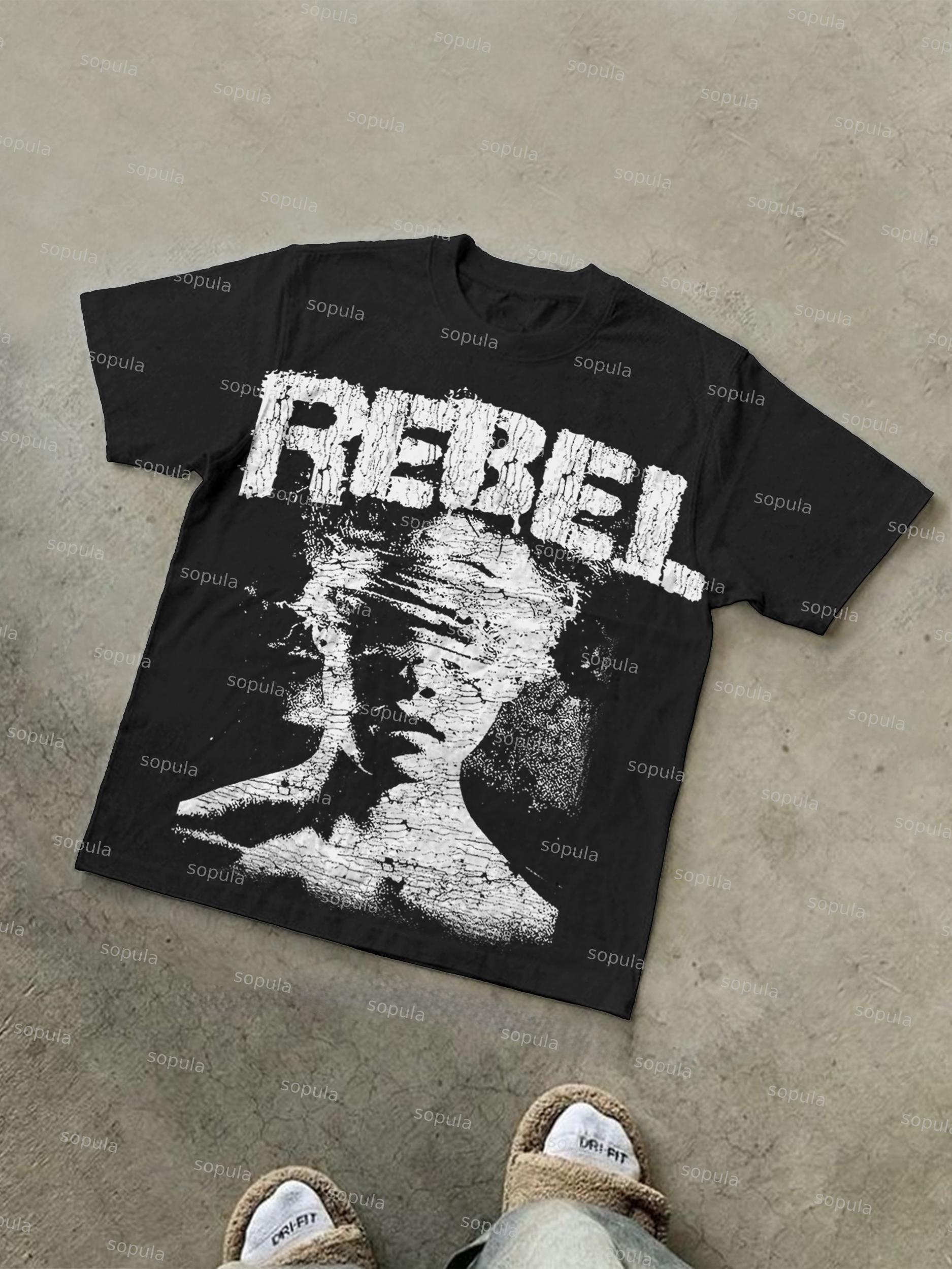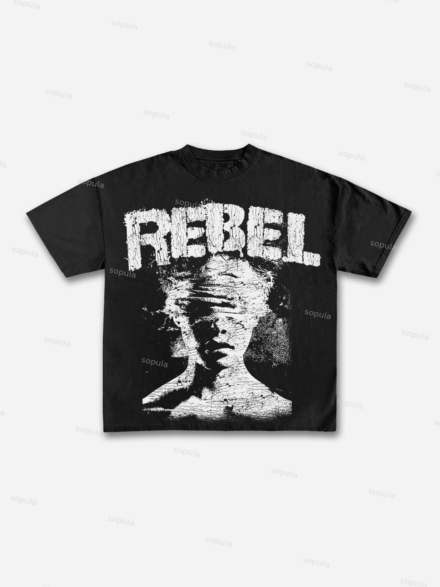 Sopula Rebel Abstract Graphic Print Cotton T-shirt. SPU: CP-220065-WJY Fabric Name: 100% Cotton Pattern: Abstract Graphic Print Process: Printed Style: Vintage Length: Regular Collar: Round Neck Popular Elements: Rebel Graphic Sleeve Type: Short Sleeve Occasion: Street, Daily Theme: Summer Size Shoulder Bust Length Sleeve cm inch cm inch cm inch cm inch S 45 17.6 98 38.2 68 26.5 20 7.8 M 48 18.7 104 40.6 71 27.7 20 7.8 L 51 19.9 110 42.9 73 28.5 20 7.8 XL 54 21.1 116 45.2 75 29.3 21 8.2 2XL 58 22.6 124 48.4 78 30.4 21 8.2 3XL 61 23.8 130 50.7 81 31.6 22 8.6 Due to manual measurement, there may be an error of 1-3cm