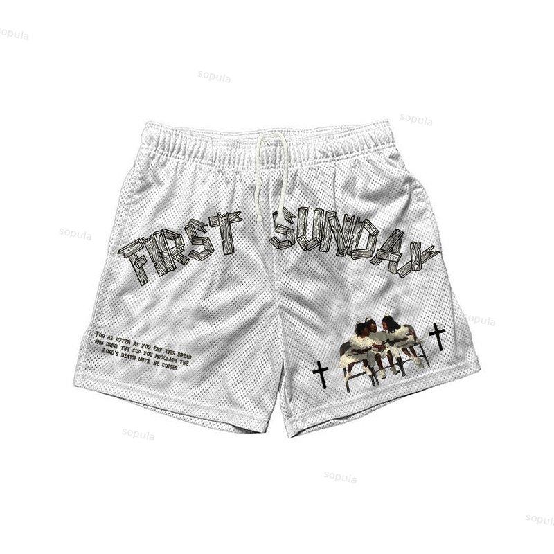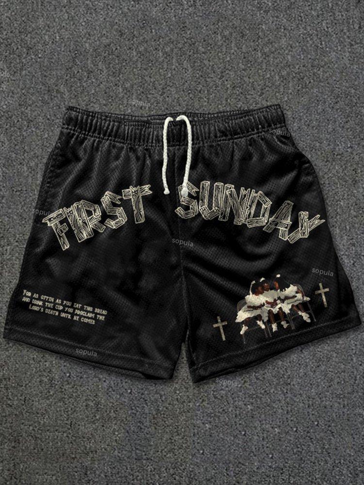 Sopula Retro First Sunday Faith Print Graphic Mesh Shorts