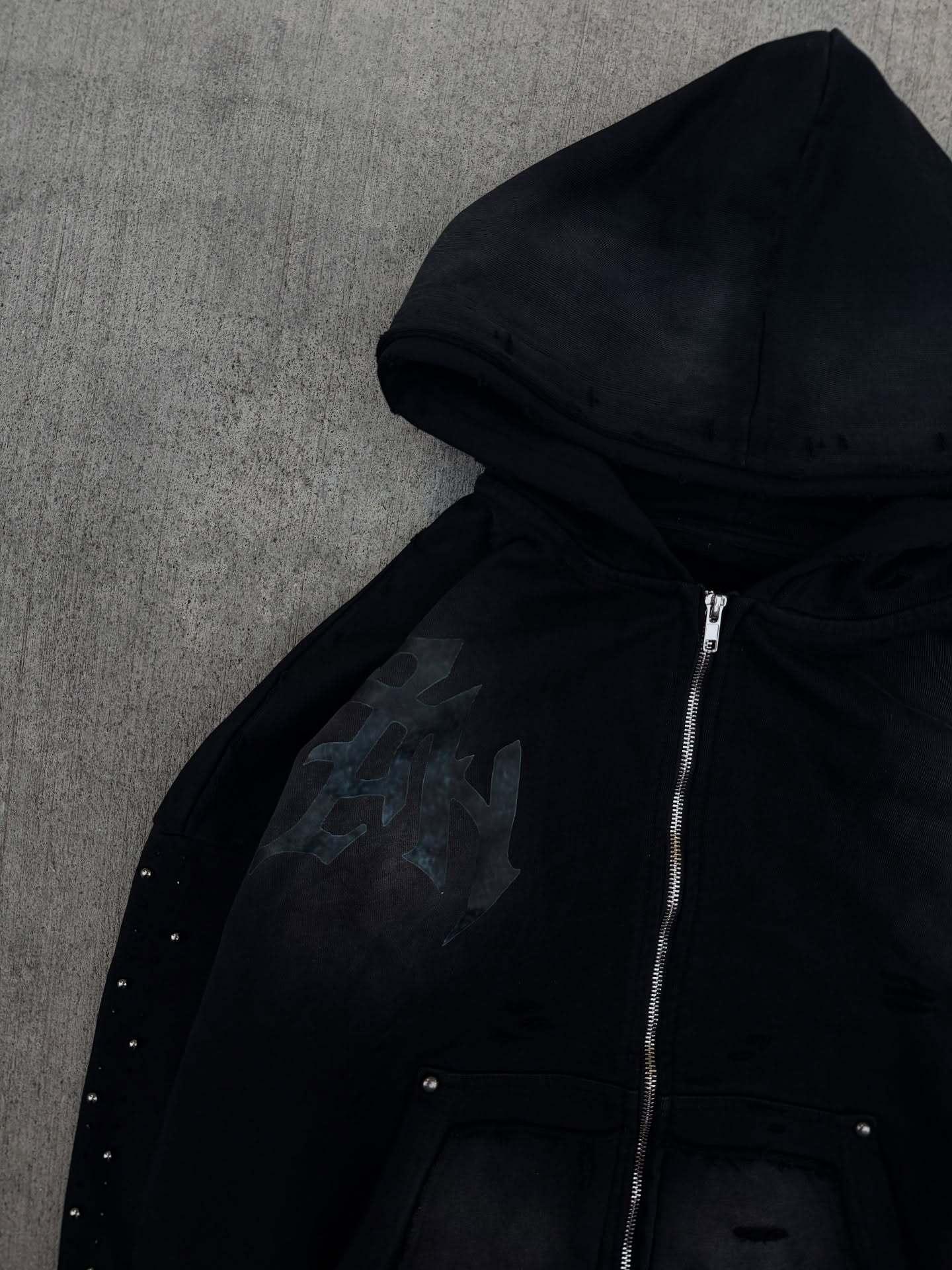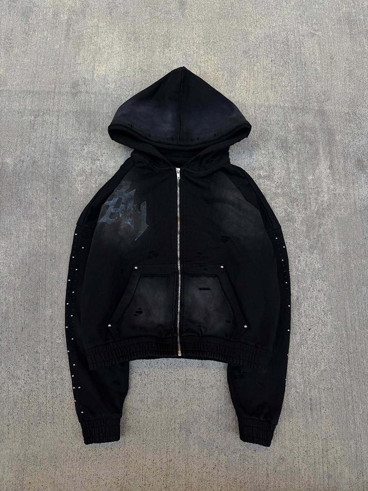 Sopula Streetwear Studded Studded Oversized Zip-up Hoodie